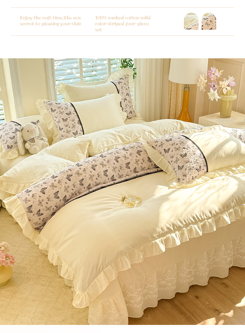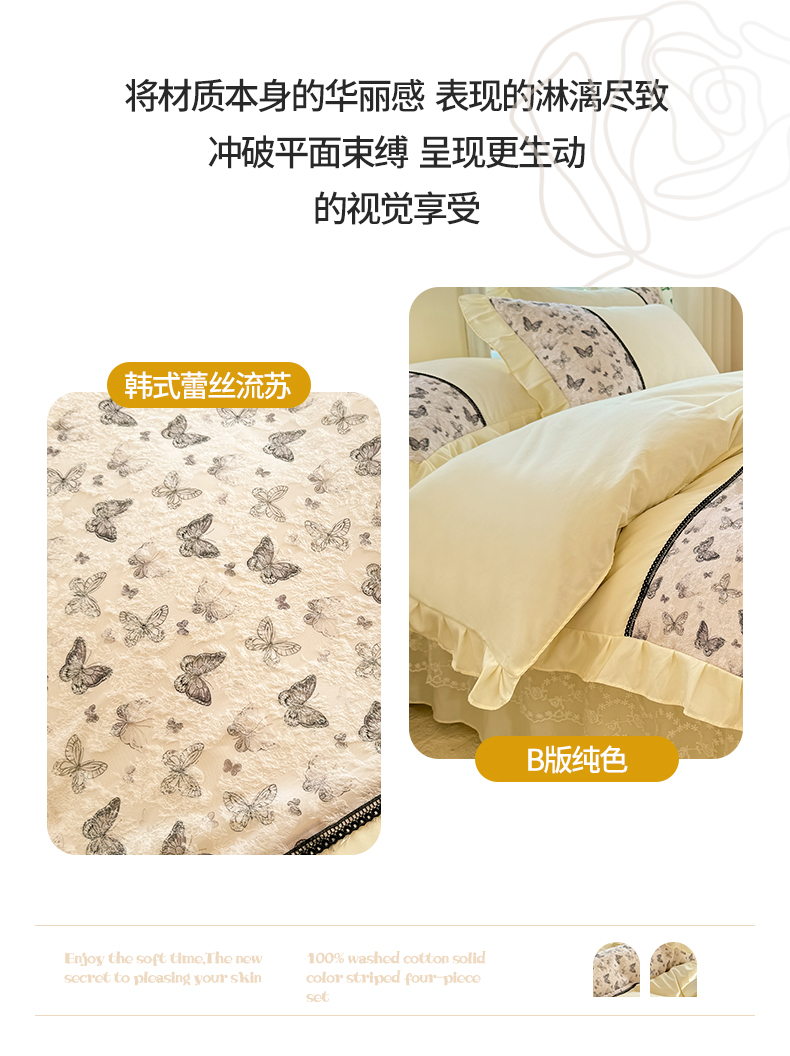 (总)芭比蔓家纺 2025新款韩式夏被四件套-蝶音,蝶音白,蝶音粉