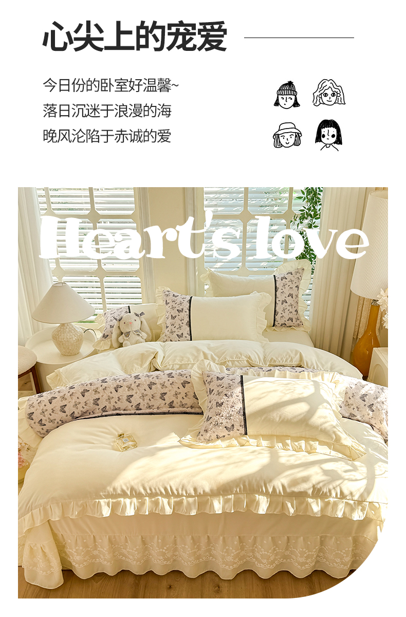 (总)芭比蔓家纺 2025新款亲肤磨毛法式浪漫四件套-依恋,依恋-粉色,依恋-蓝色,依恋-绿色,依恋-米色,依恋-玉色