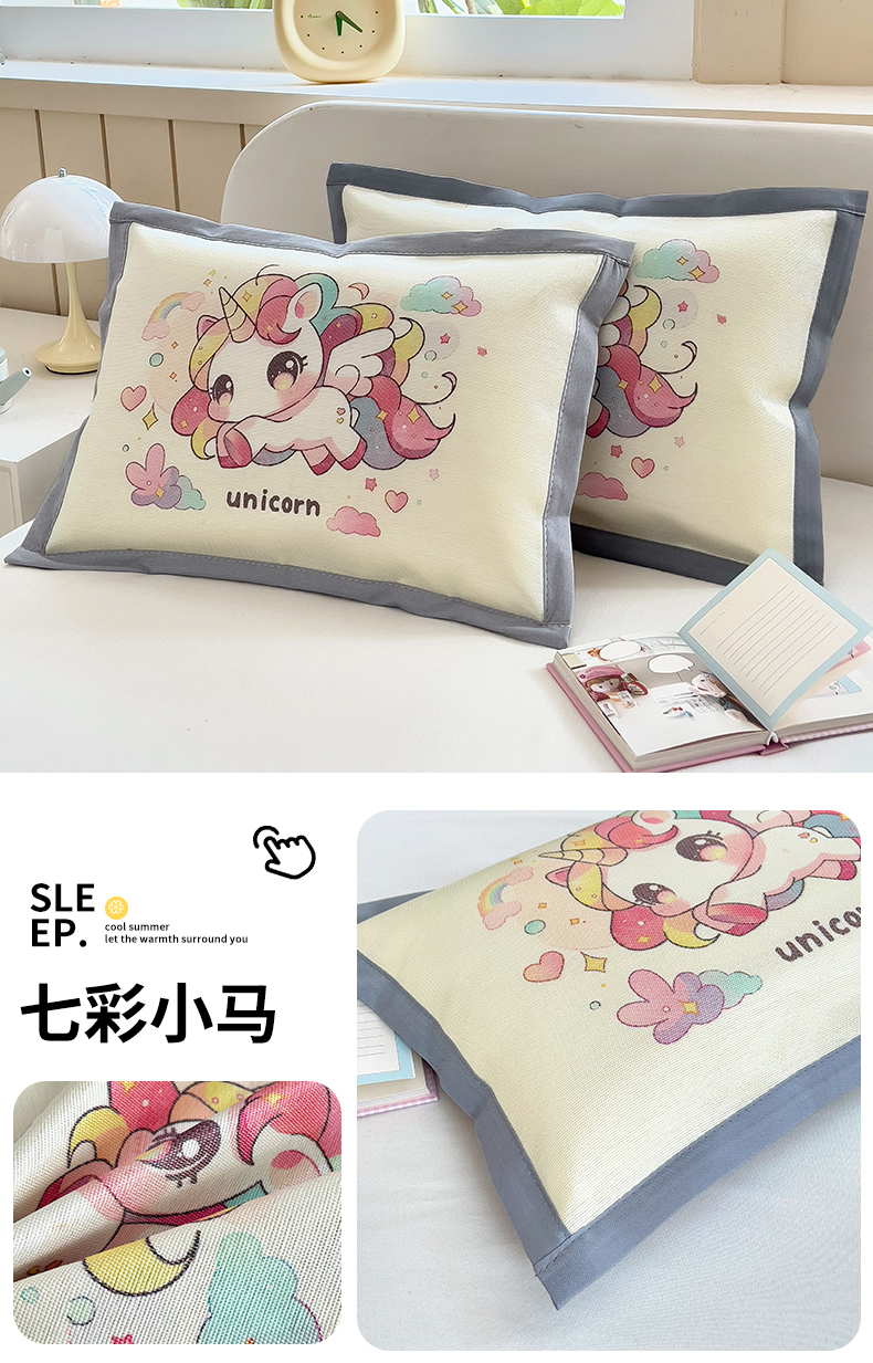商品名称:梵赫 2025新款大版儿童冰丝枕套幼儿园枕套 七彩小马