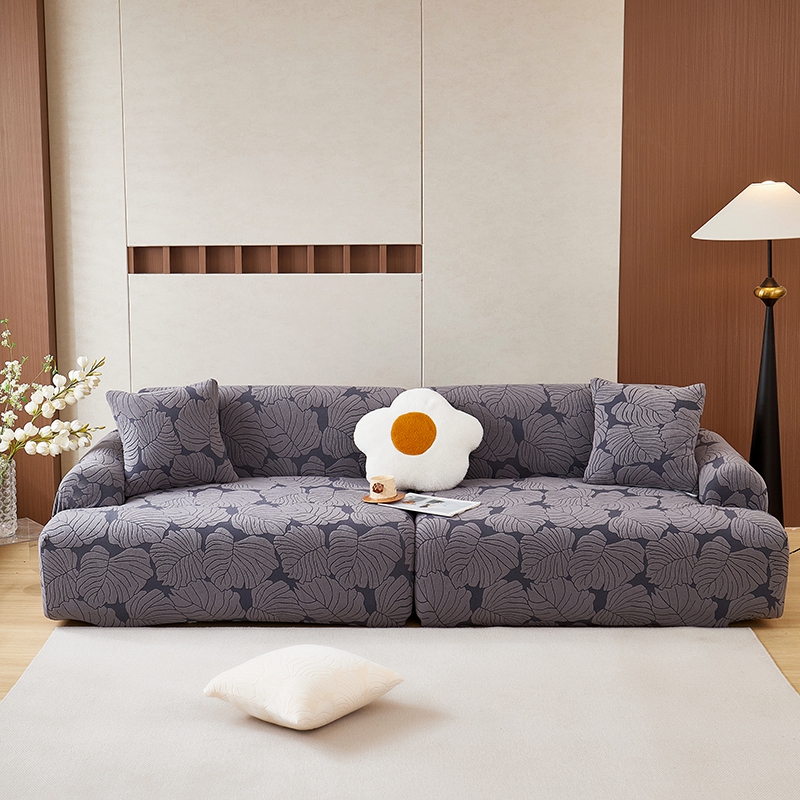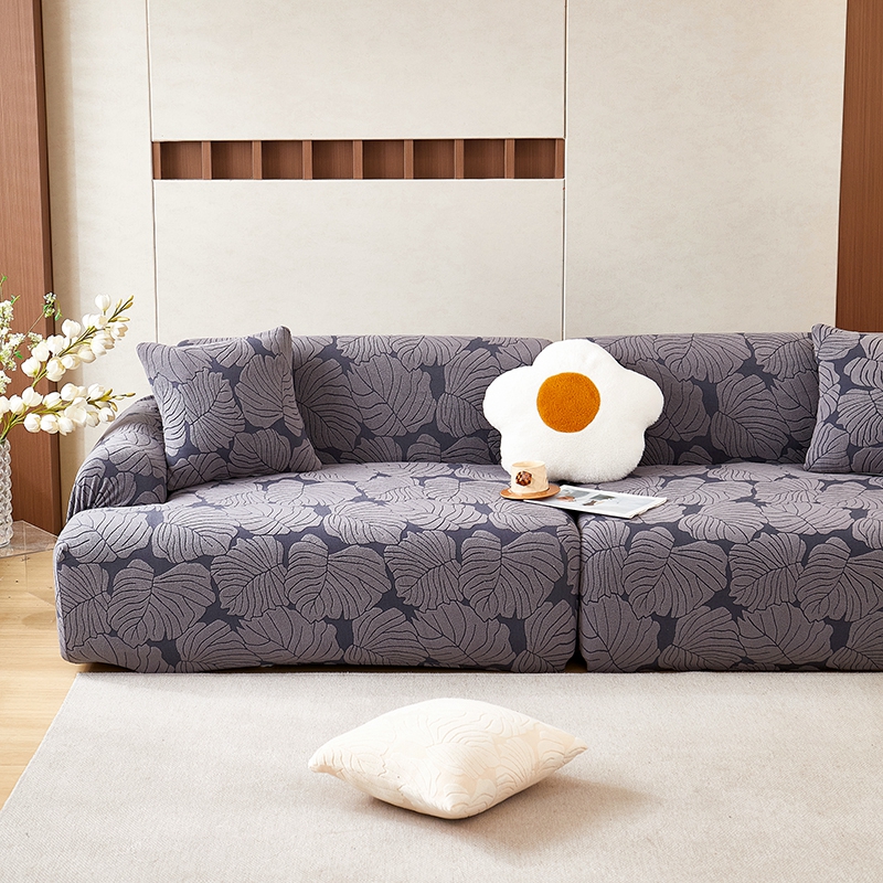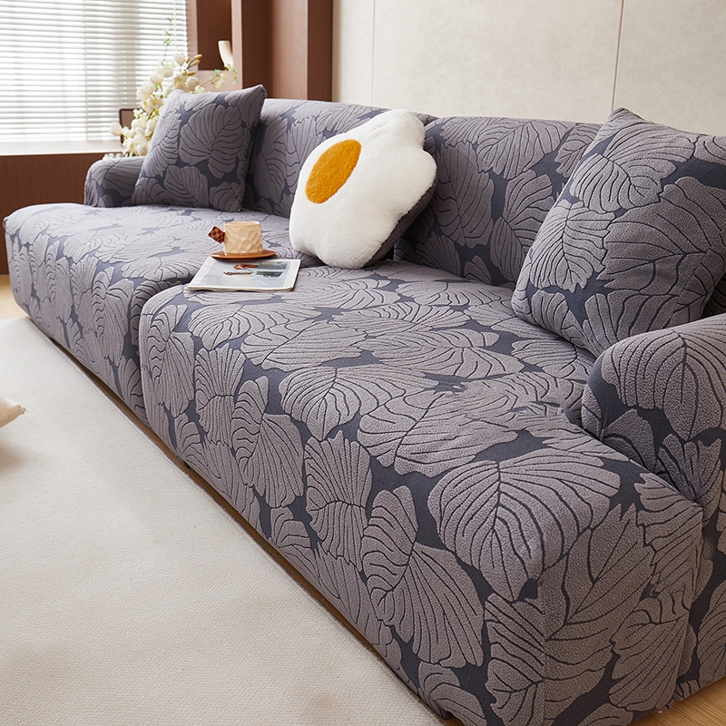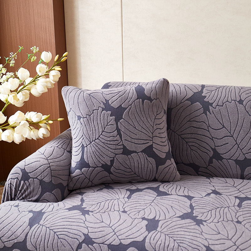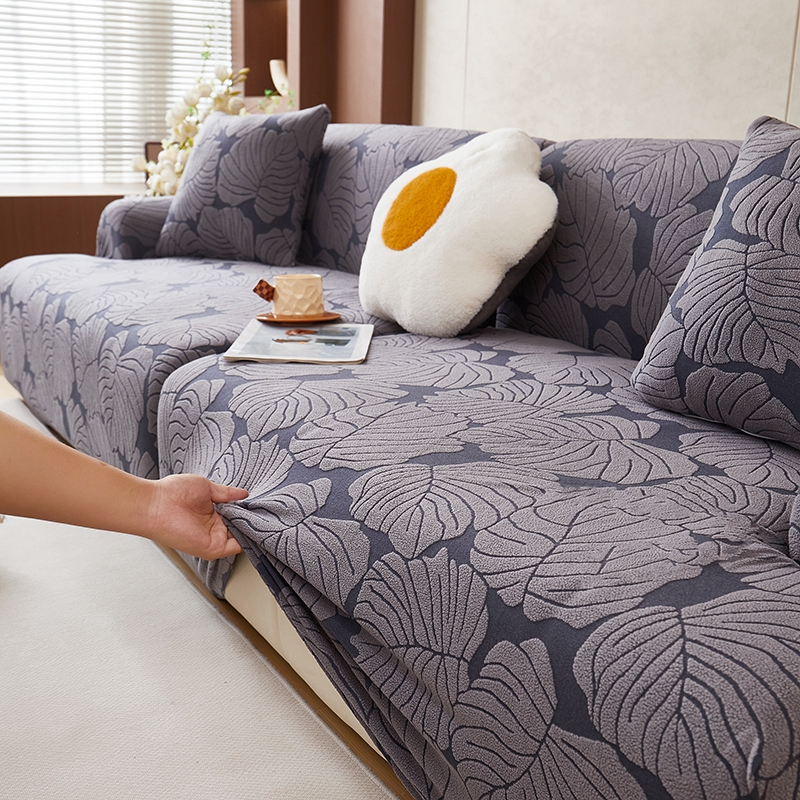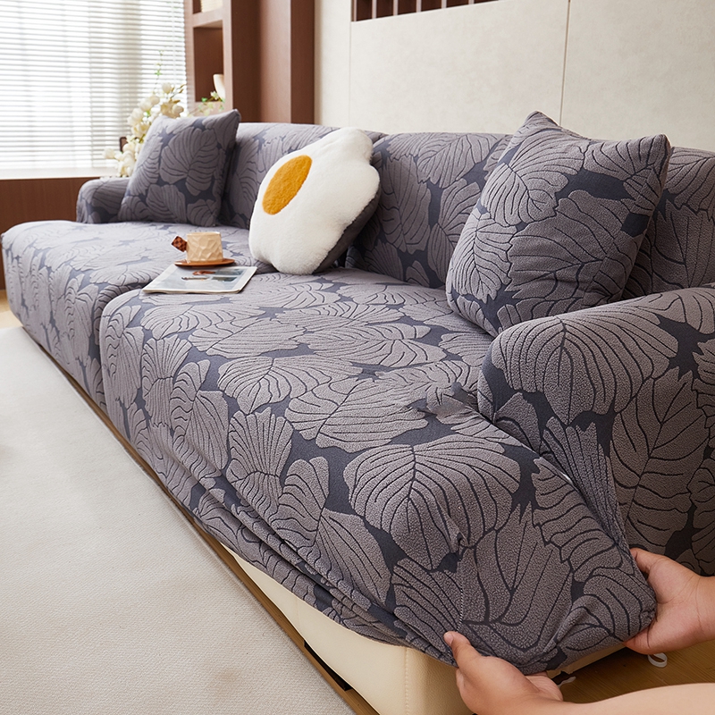丝绮鹿 2025新款羊羔绒直排松紧款沙发套-枫叶 枫叶-烟灰