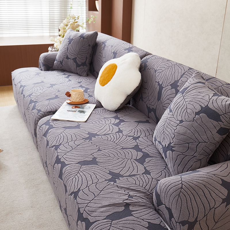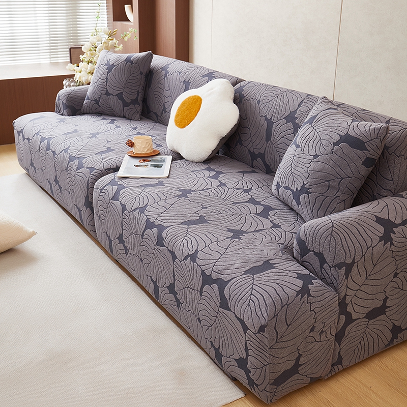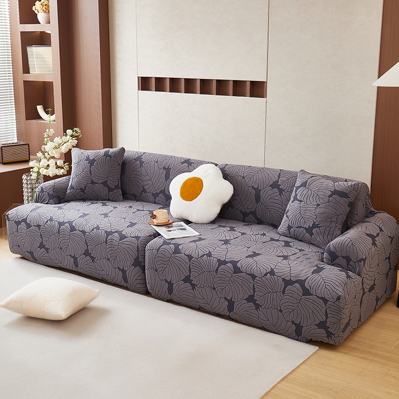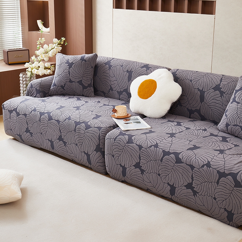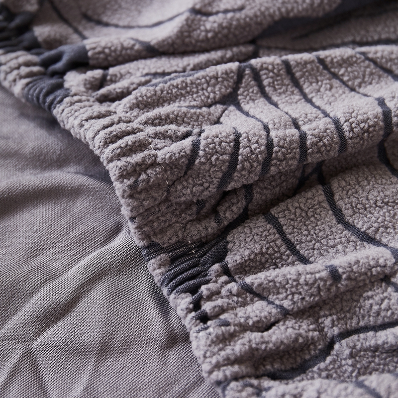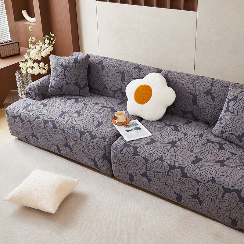 丝绮鹿 2025新款羊羔绒直排松紧款沙发套-枫叶 枫叶-烟灰