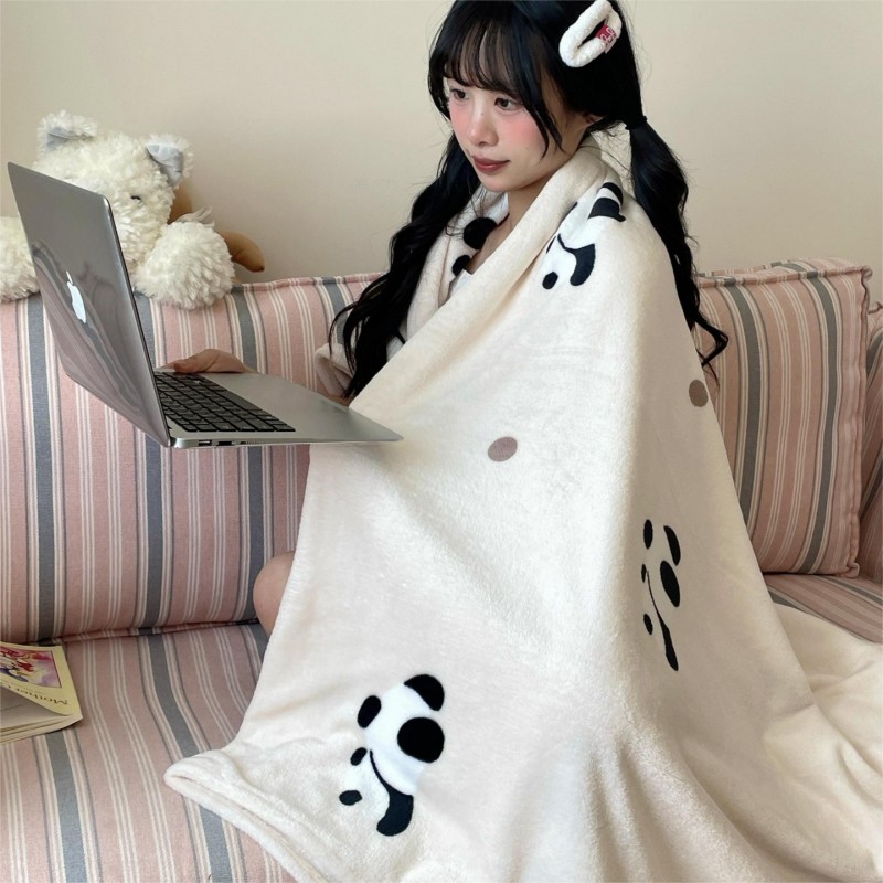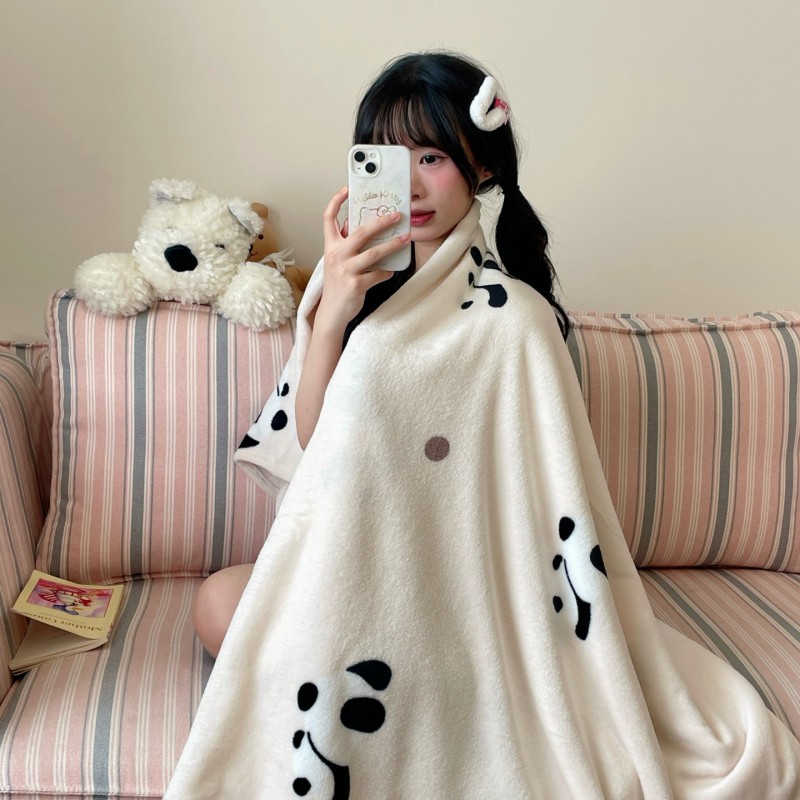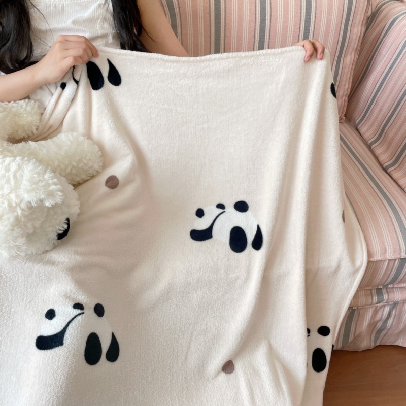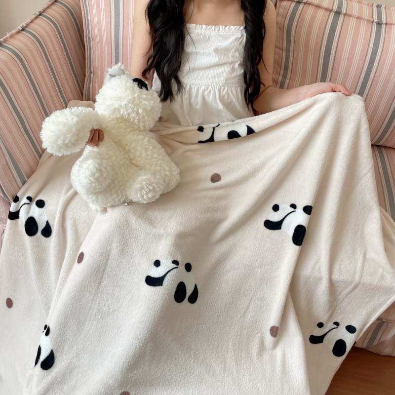 顾里家纺 2025新款ins少女奶油治愈双面牛奶绒毯 波点熊猫