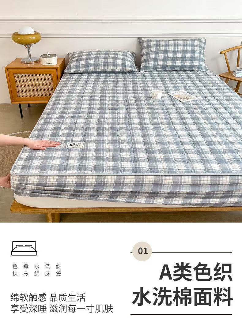 • 91家纺网 家纺一手货源 找家纺 希廷顿 2025新款色织水洗棉夹棉棉花床笠床笠单件单床笠 简兮蓝