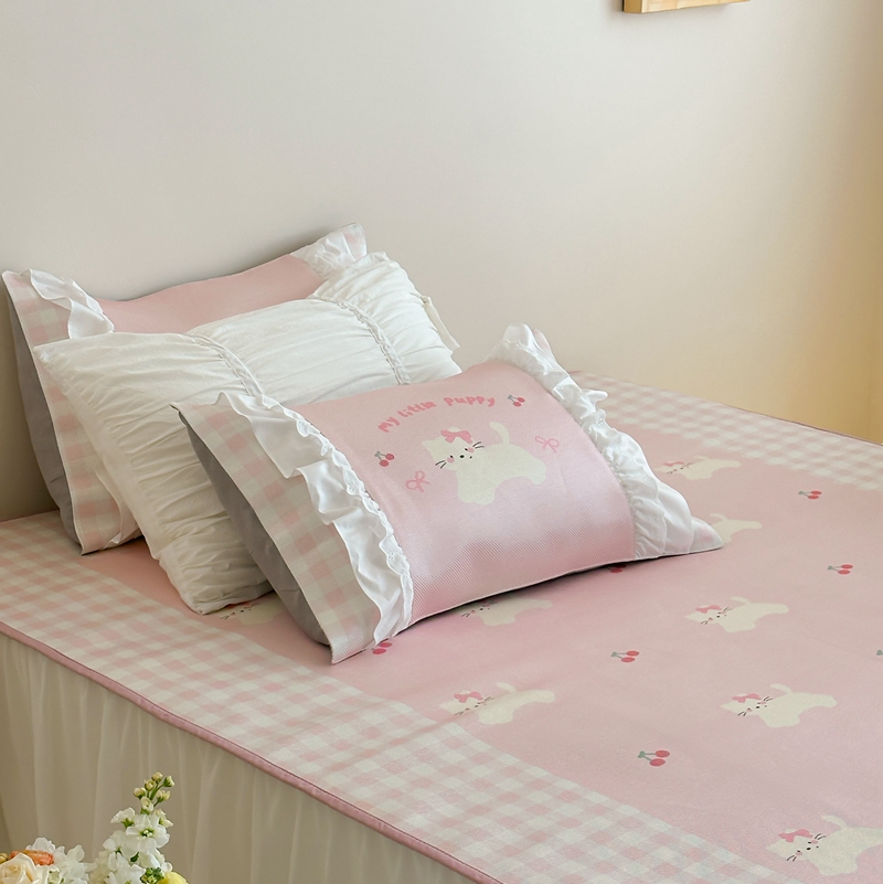 (总)觅糖家纺 2025新款牛奶绒荷叶边小小系列四件套,小小爱心白,小小樱桃酱