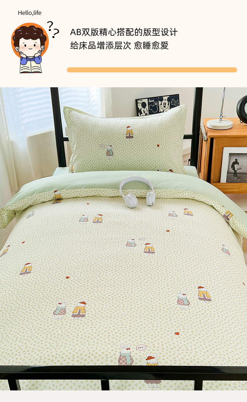 当前位置: 91家纺网 > 商品网购 > 床品套件 > 三件套 > 锦润家纺2025新款全棉13372学生三件套纯棉宿舍六件套 奶萌兔-米