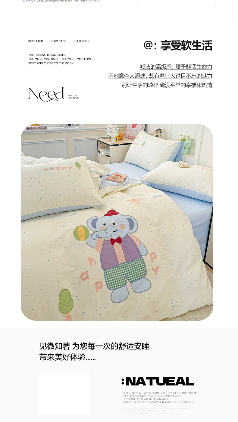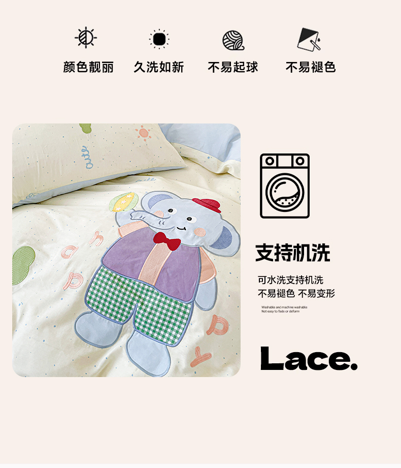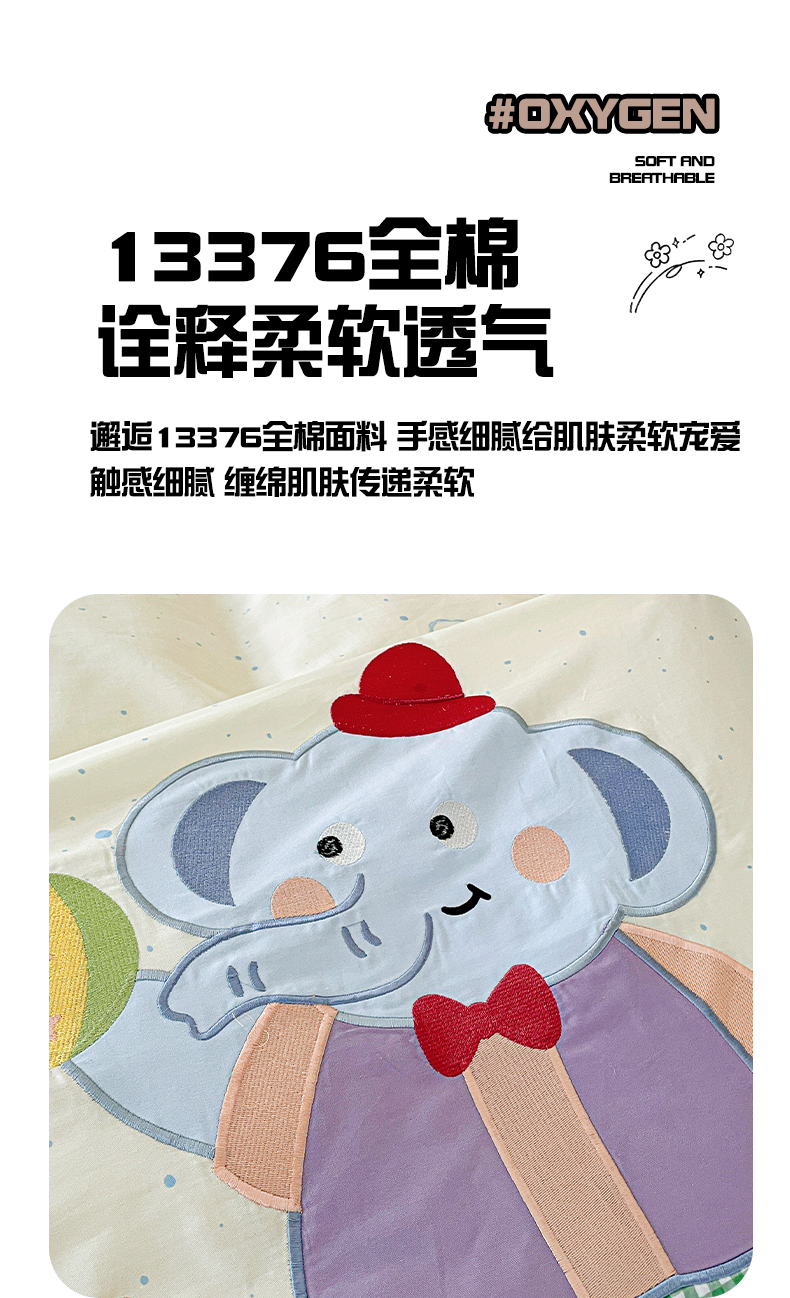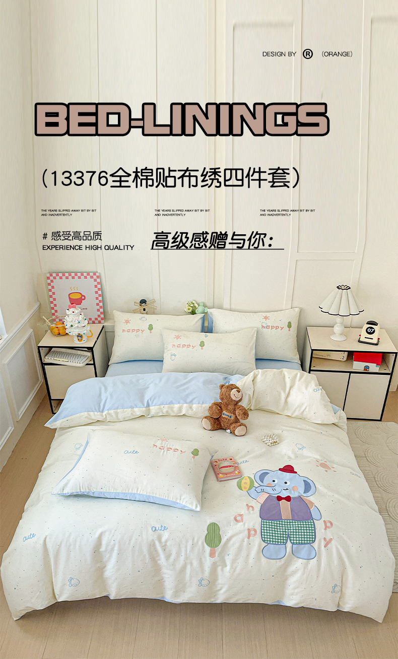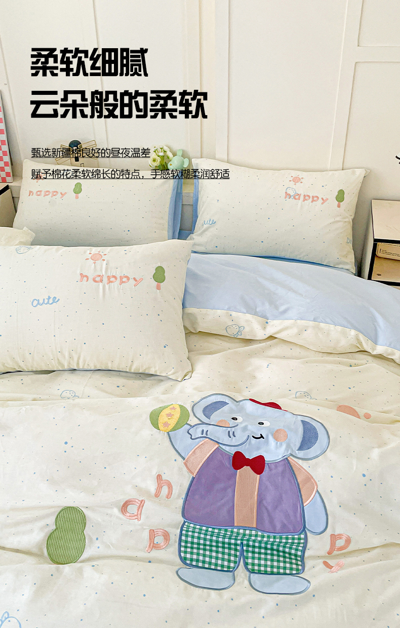 娜娜 2025新款13376全棉贴布绣四件套 小飞象