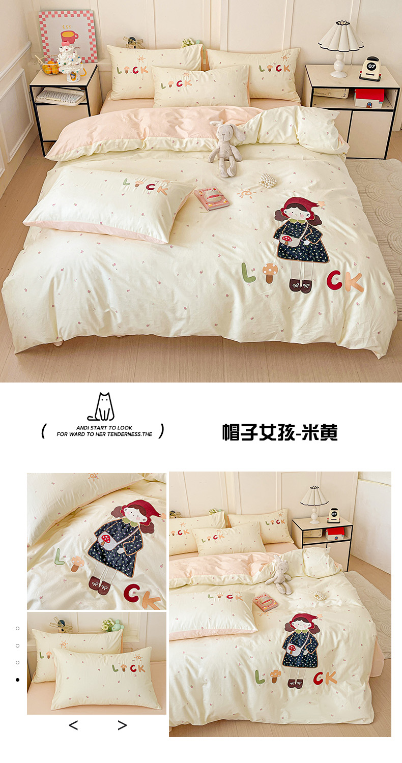 (总)娜娜 2025新款60支全棉贴布绣床笠,爱心绿兔,快乐小象,幸运女孩粉,幸运女孩黄,樱桃粉兔,组合图仅供展示