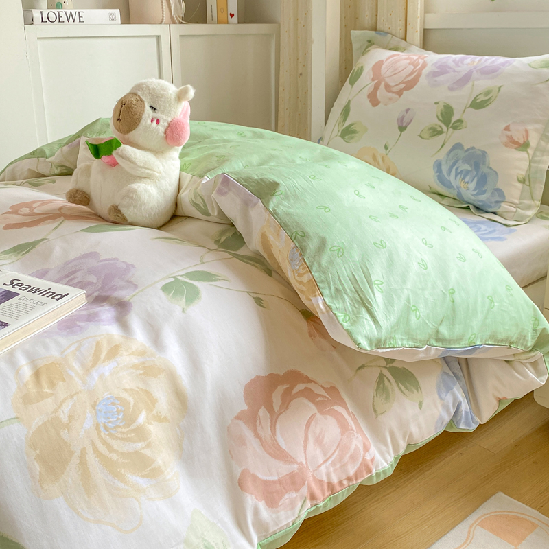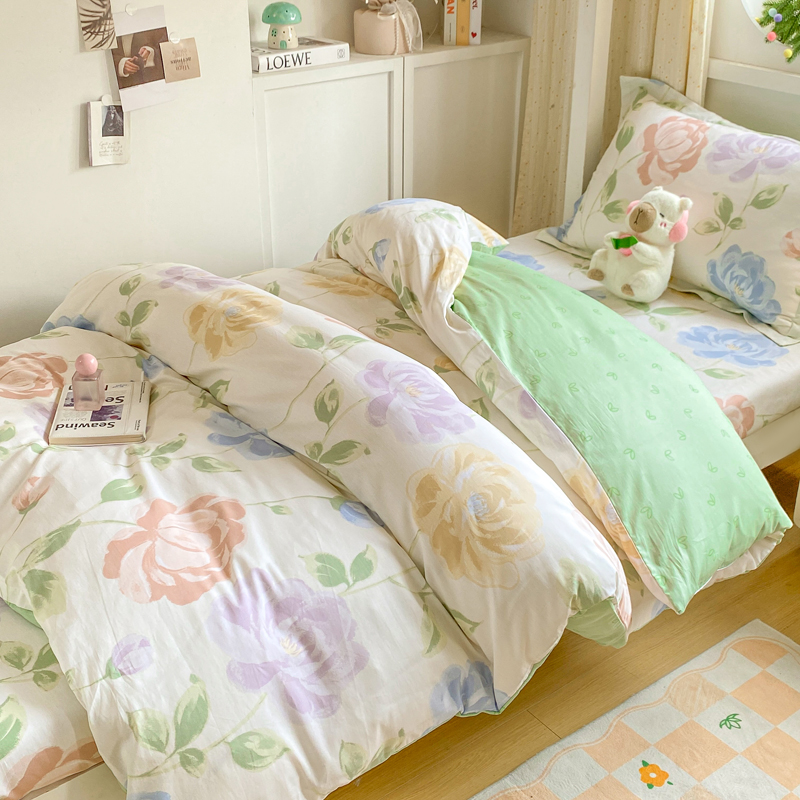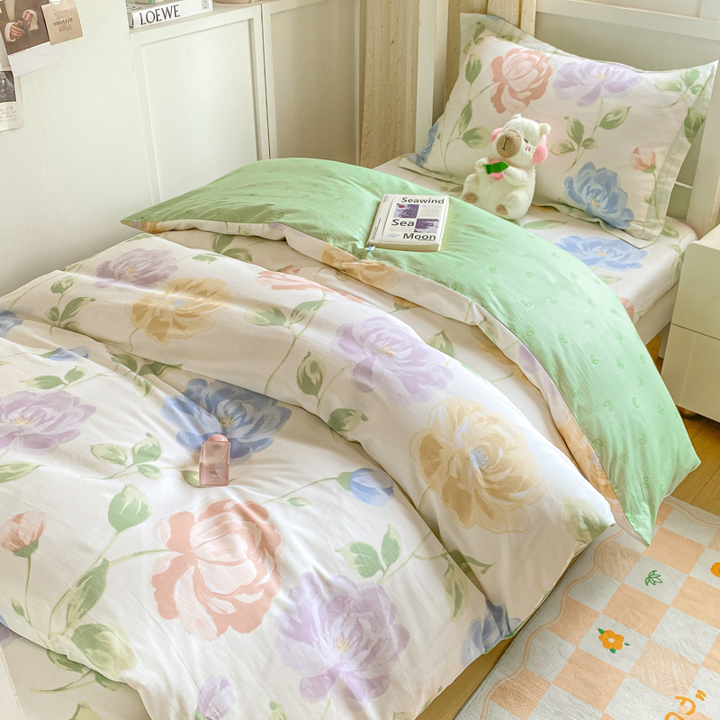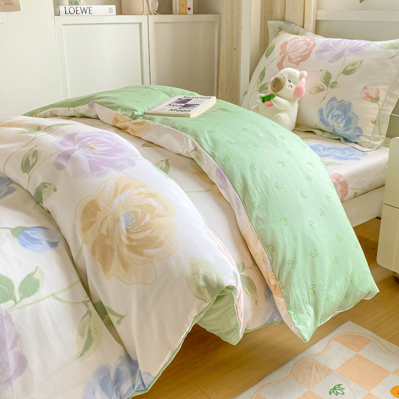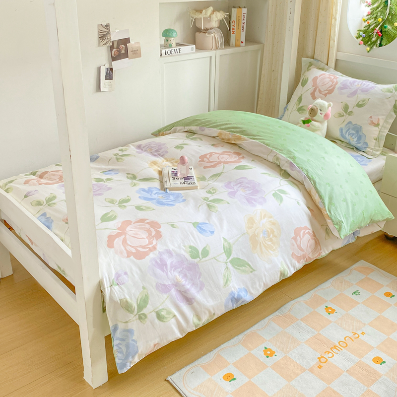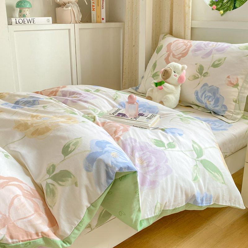 朵安2025新款全棉印花学生三件套 玫瑰花海