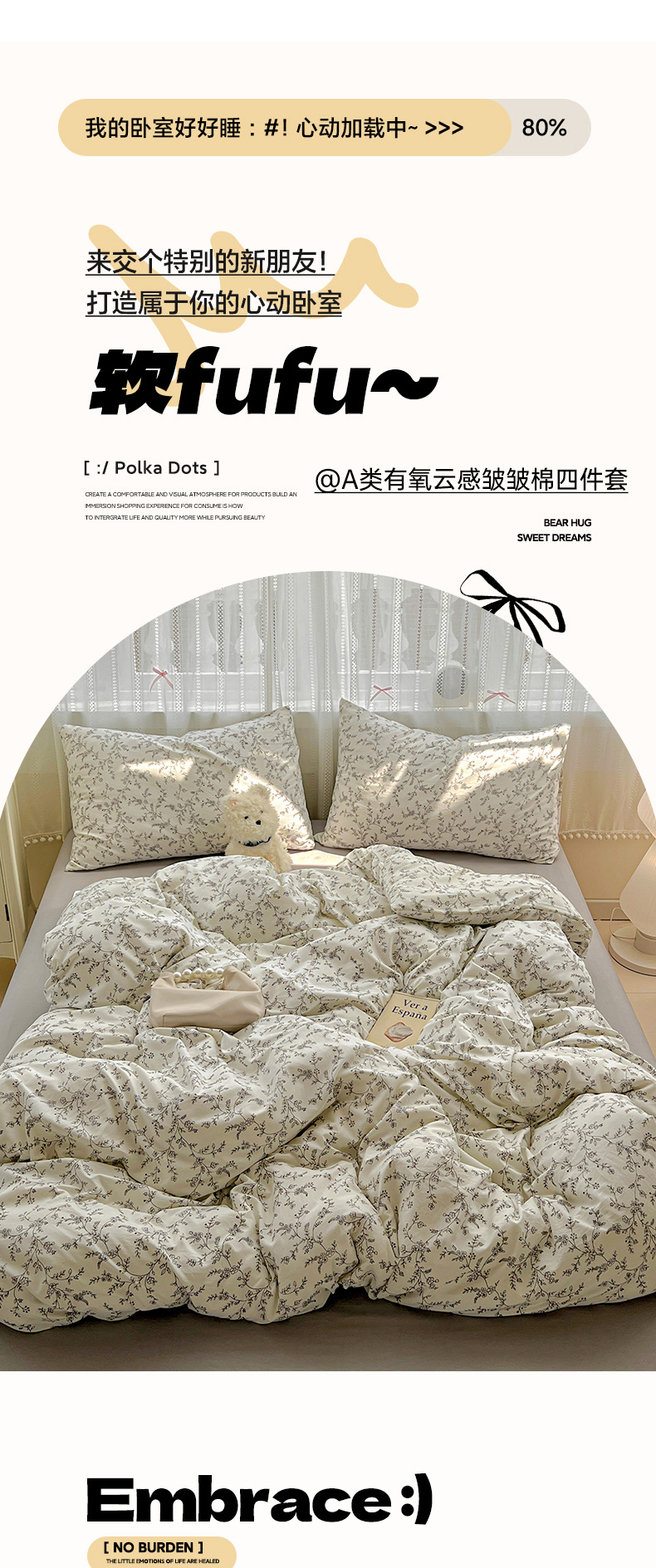 商品名称:(总)朵朵家纺2025直播云感床单款三四件套水洗简约风小碎花被套床笠三四件套