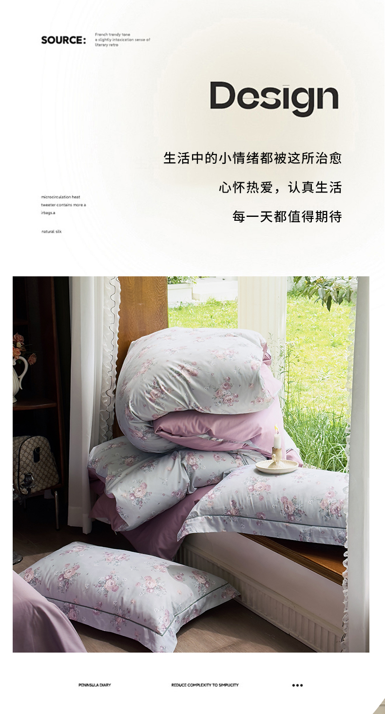 (总)由丽家纺 2025新款亲肤舒适全棉纯棉臻棉数码印花四件套系列,繁花似锦,感棉-粉,金溪-灰,金溪-咖,茂林-兰,明羽-黄,沐恩-绿,野玫瑰-紫,感棉-绿,玫瑰颂-粉