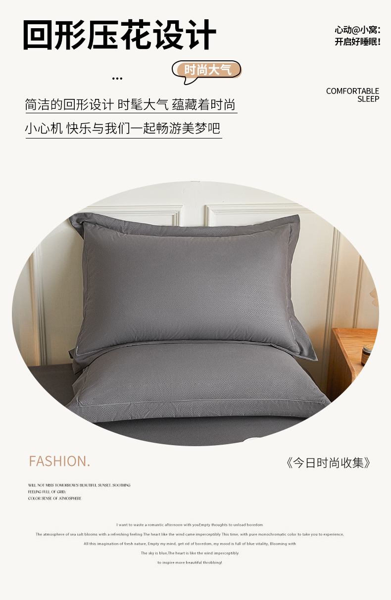 商品名称:露梦家纺 2025新款纯色磨毛压花简约枕套 深灰