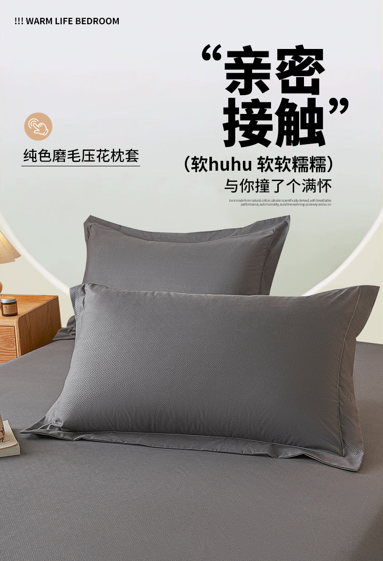 (总)露梦家纺 2025新款纯色磨毛压花简约枕套,暗夜黑,丁香紫,豆沙,蓝色,抹茶绿,奶昔白,浅灰,深灰,松石绿,香槟
