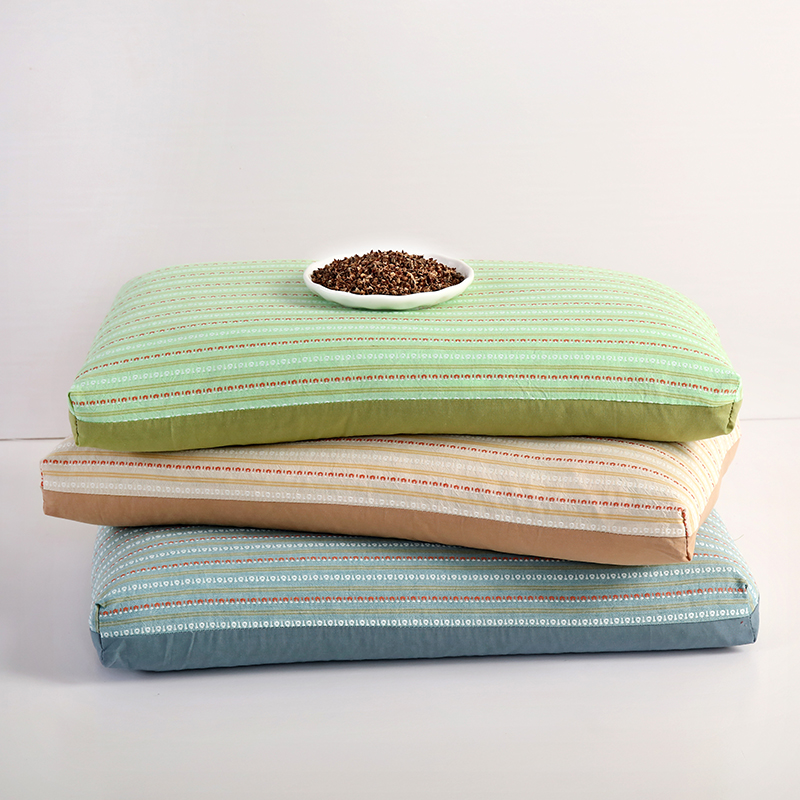(总)明星枕业 2025新款3D条纹双拼枕直角荞麦枕全荞麦皮枕芯可拆洗,3D双拼卡其35*55cm/个,3D双拼蓝35*55cm/个,3D双拼绿35*55cm/个