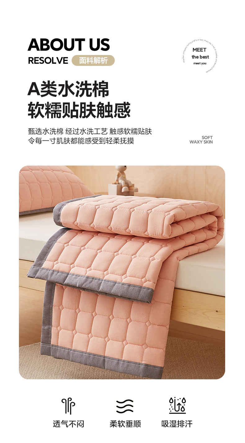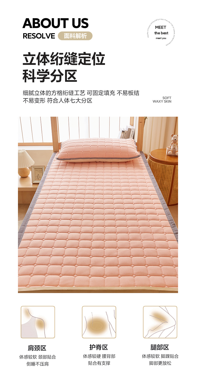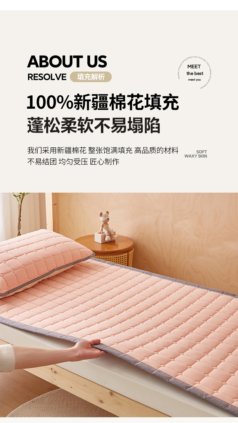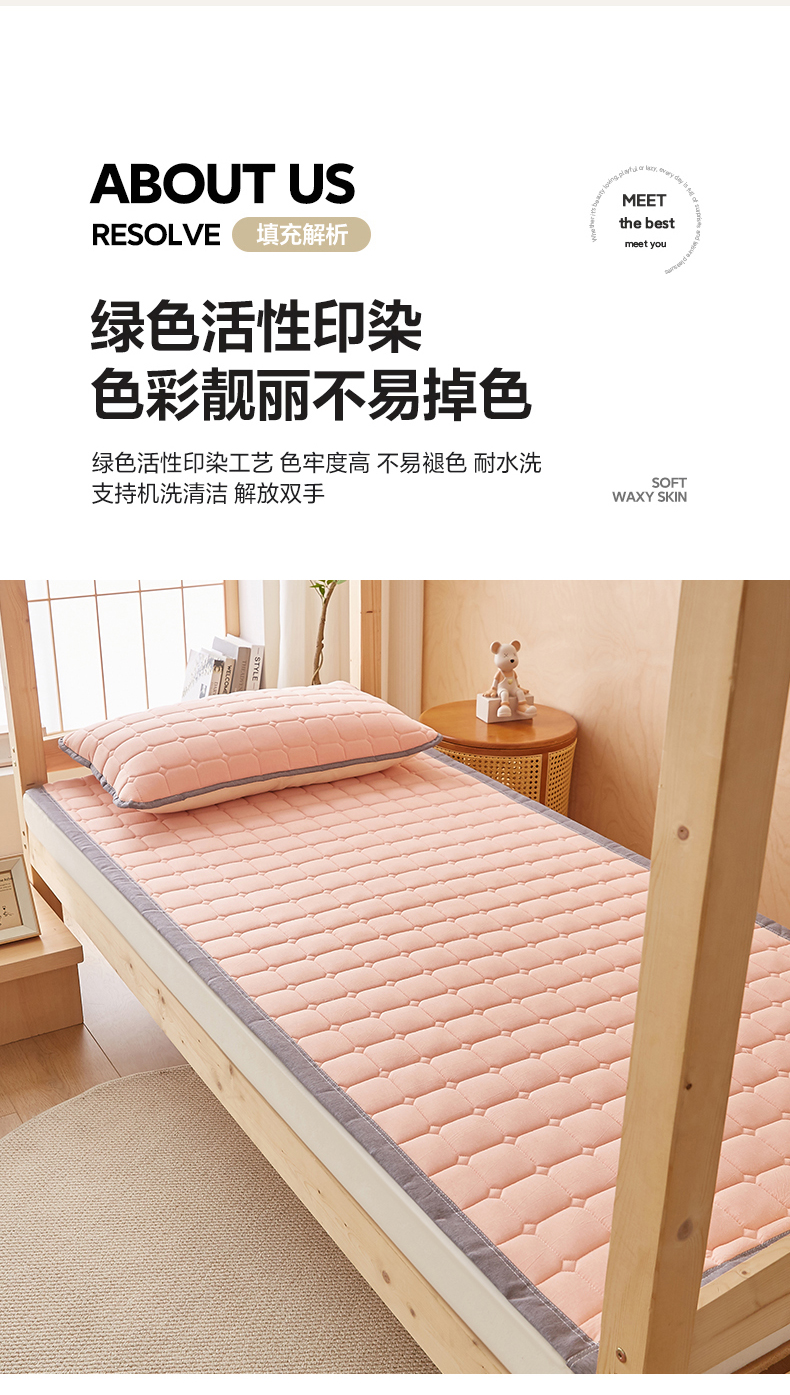 • 91家纺网 家纺一手货源 找家纺 暖季家纺 2025新款A类水洗棉学生絮叠床护垫 絮叠床护垫-粉