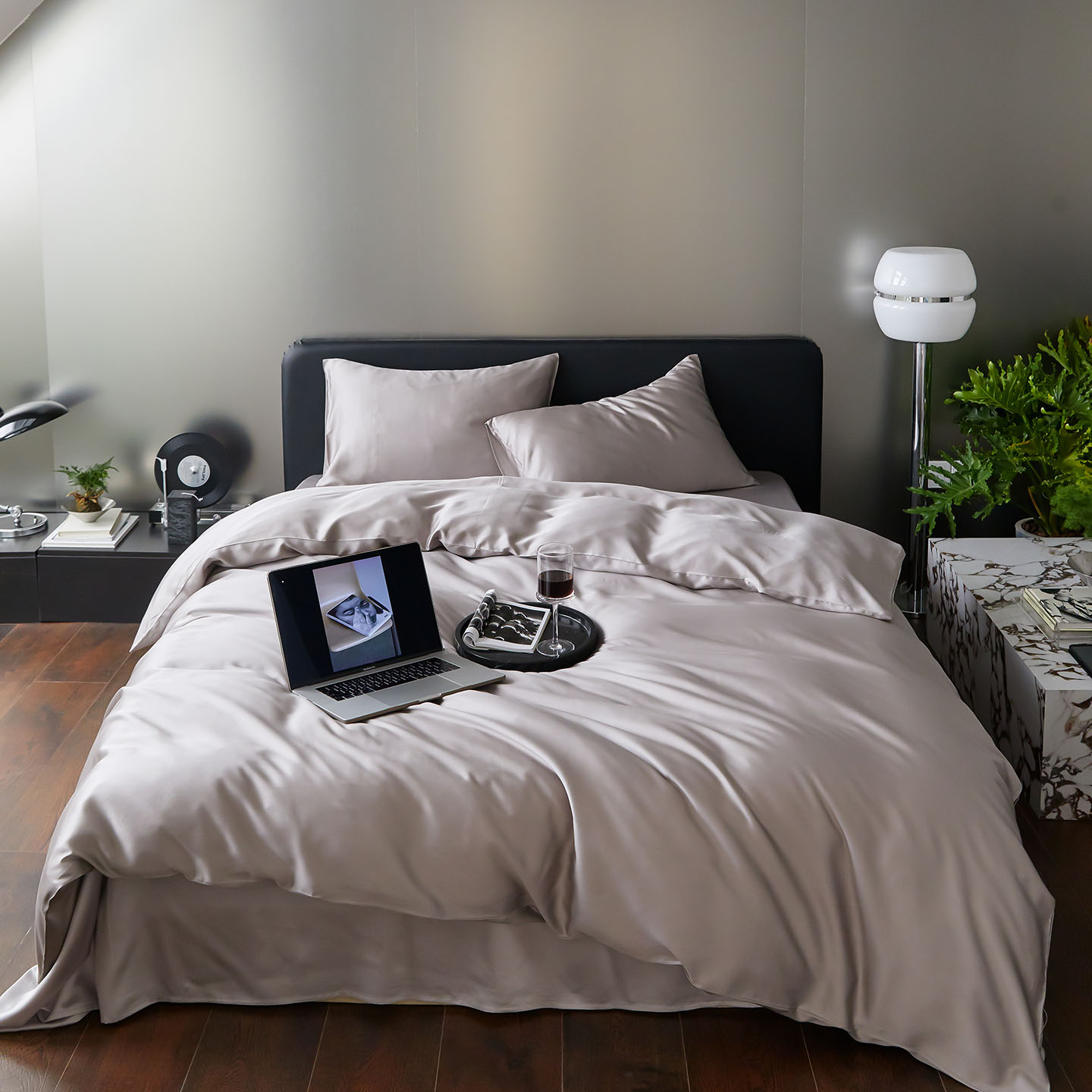 群鹿蚕丝羽绒馆 2025新款60支兰精天丝纯色双拼四件套 敦煌色-曙光银