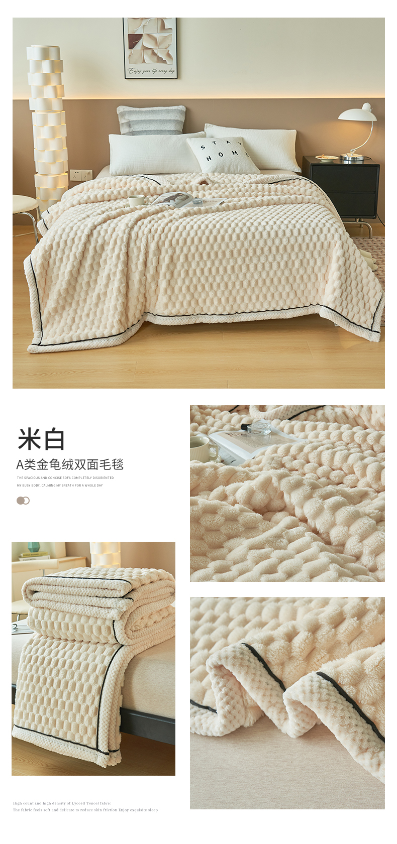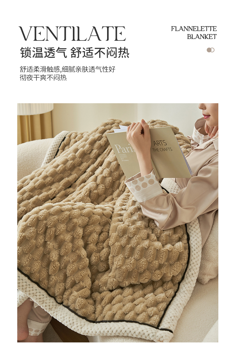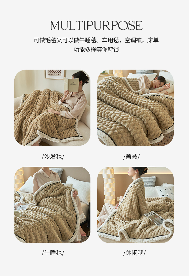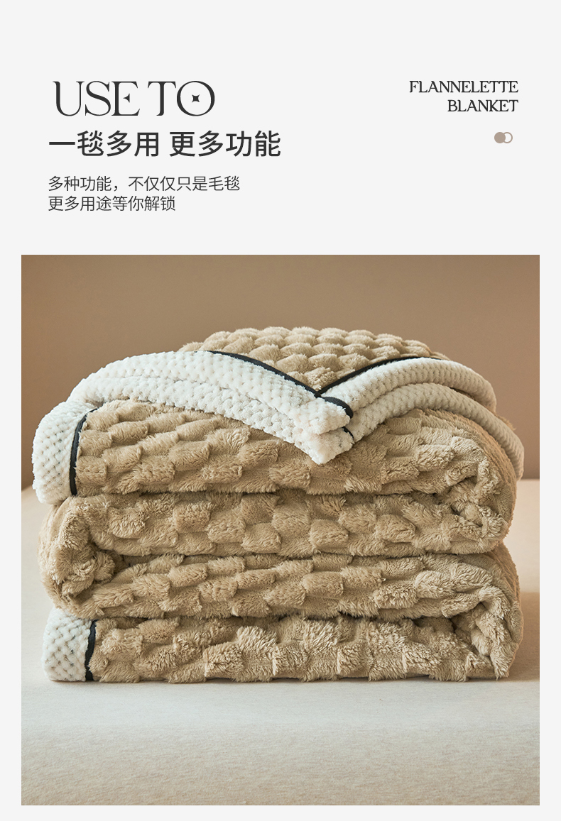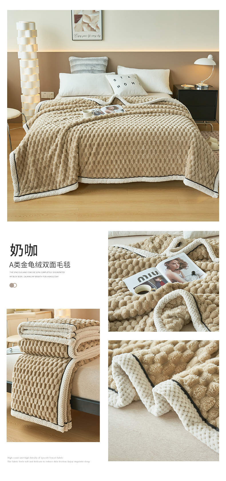商品名称:乐家欣 2025新款A类金龟绒多功能毛毯高克重法莱绒牛奶绒贝贝绒保暖毛毯 奶咖