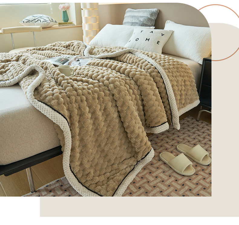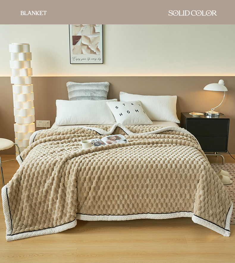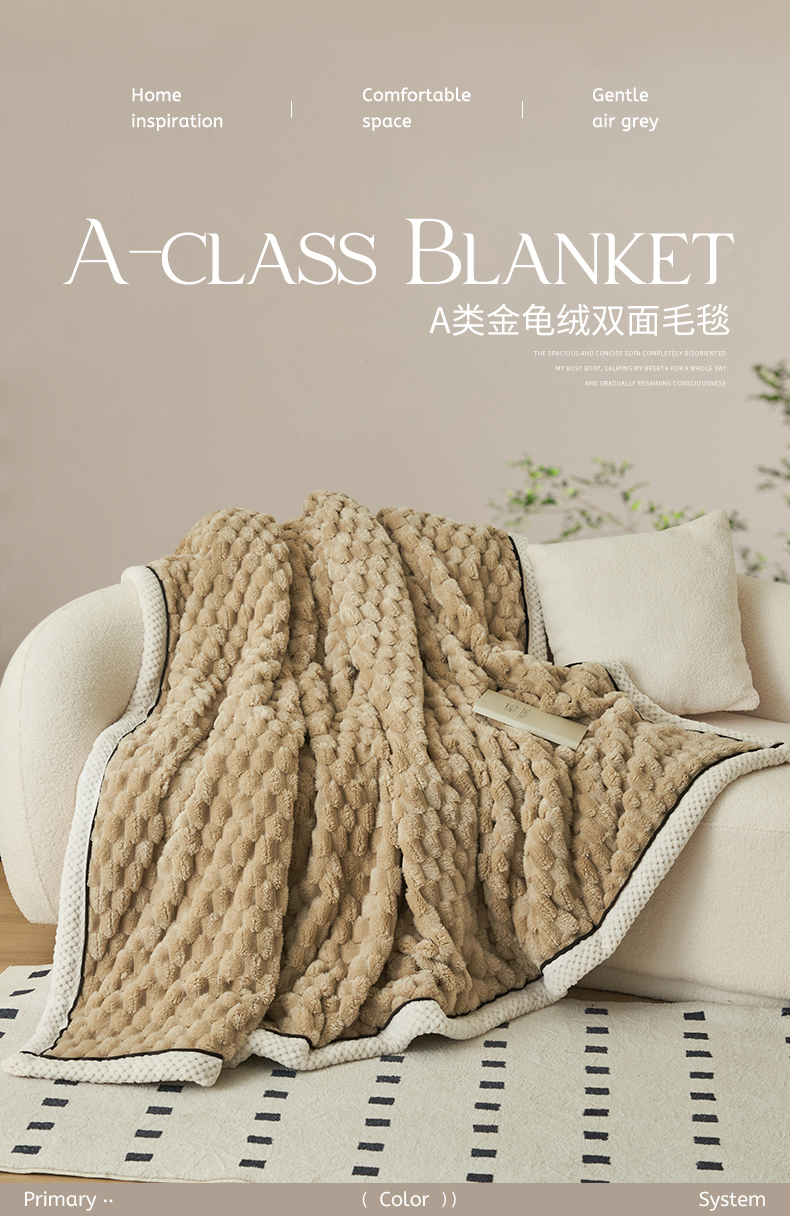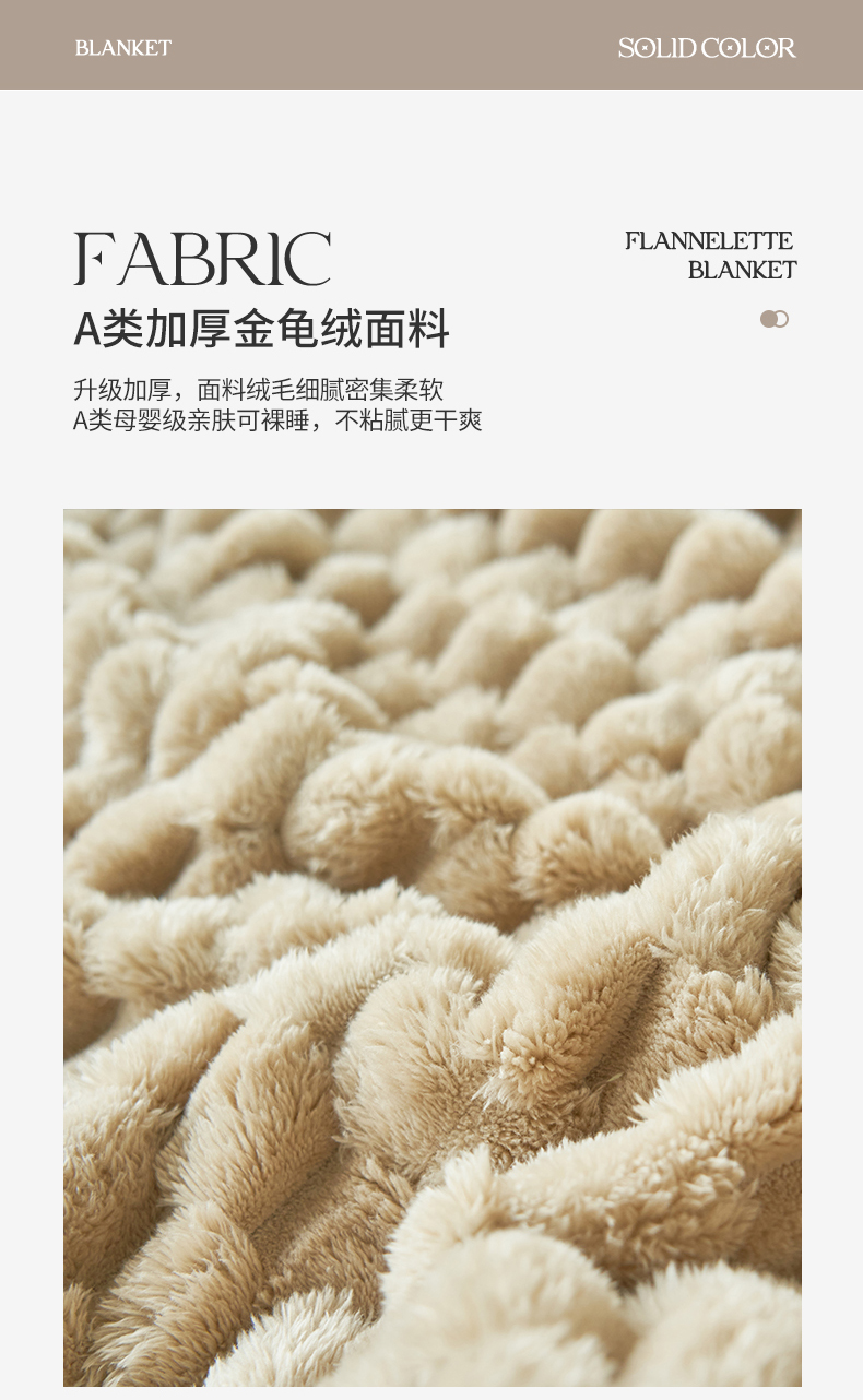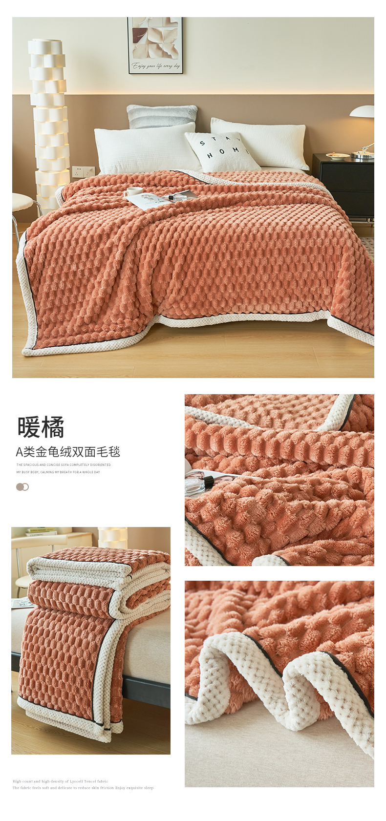 商品名称:乐家欣 2025新款A类金龟绒多功能毛毯高克重法莱绒牛奶绒贝贝绒保暖毛毯 奶咖