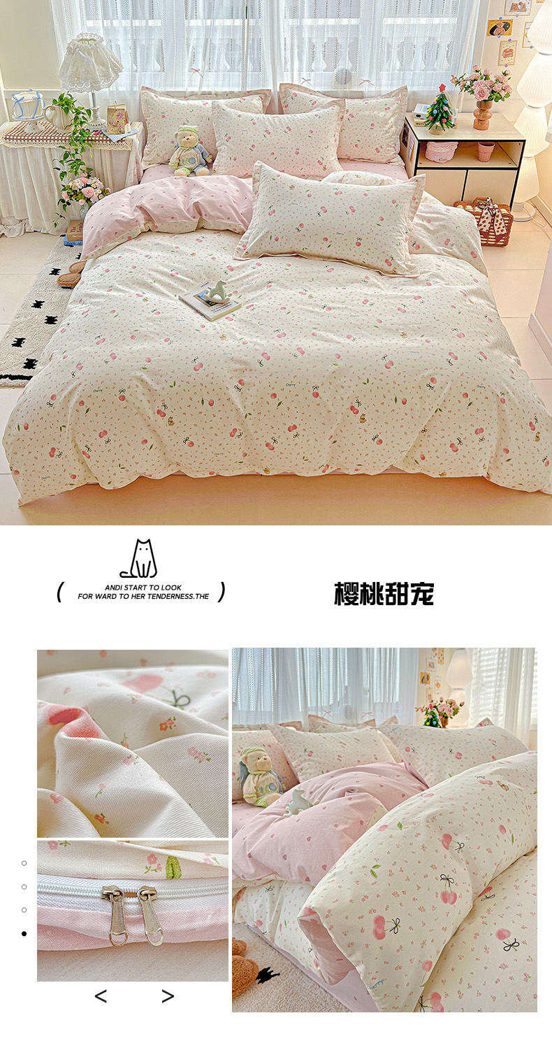 当前位置: 91家纺网 > 商品网购 > 床品套件 > 四件套 > 全棉普通四件套 > 依庭2025春夏新款12868全棉纯棉四件套 樱桃甜宠