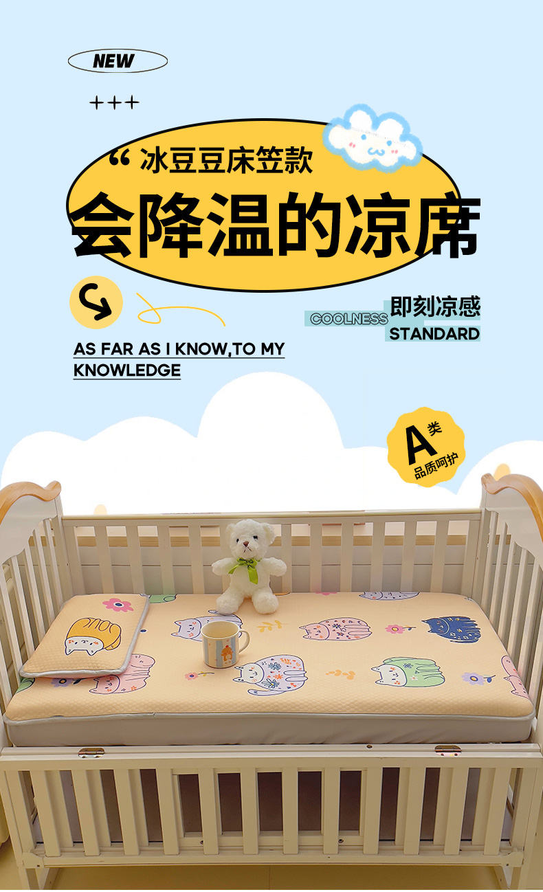 • 91家纺网 家纺一手货源 找家纺 小叮当家纺仓储工厂店 (提供买家秀 爆款花型 不断货)2025新款冰豆豆儿童卡通凉席床笠 小猫