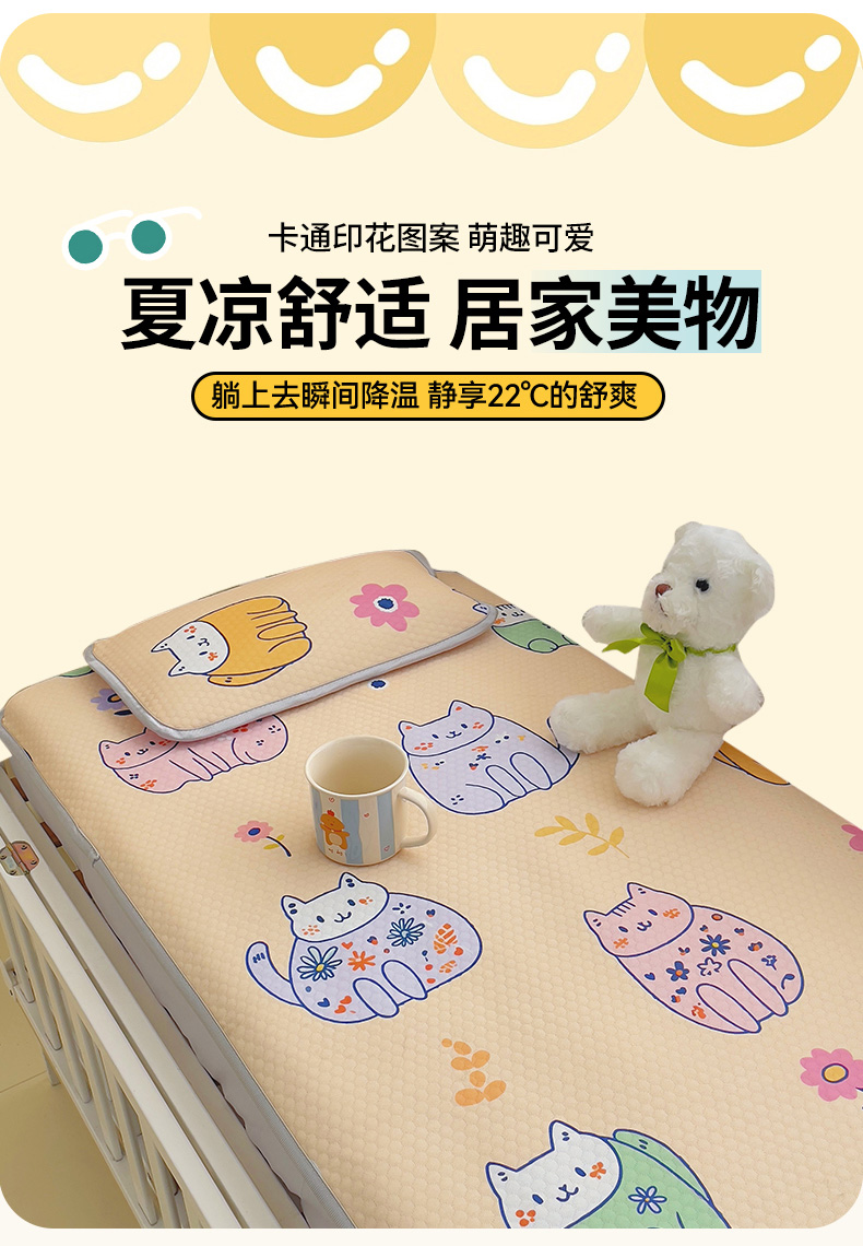 当前位置: 91家纺网 > 商品网购 > 床上用品 > 凉席 > 小叮当家纺仓储工厂店 (提供买家秀 爆款花型 不断货)2025新款冰豆豆儿童卡通凉席床笠 小猫