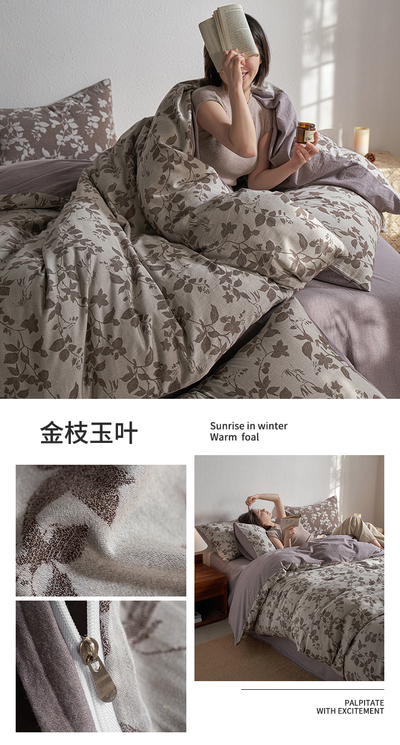 三朵家纺 2025新款全棉纯棉水洗棉色织提花四件套 微纳