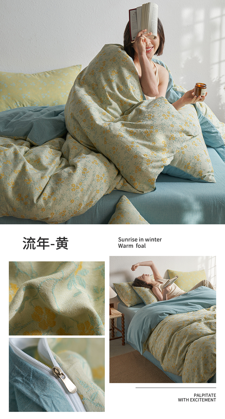 商品名称:三朵家纺 2025新款全棉纯棉水洗棉色织提花四件套 微纳
