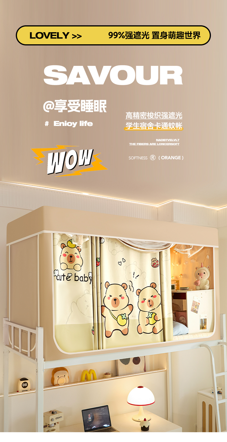 当前位置: 91家纺网 > 商品网购 > 床上用品 > 蚊帐 > 学生蚊帐 > 世婕 2025新款高精密梭织强遮光学生宿舍卡通蚊帐 梭织-卡皮巴拉
