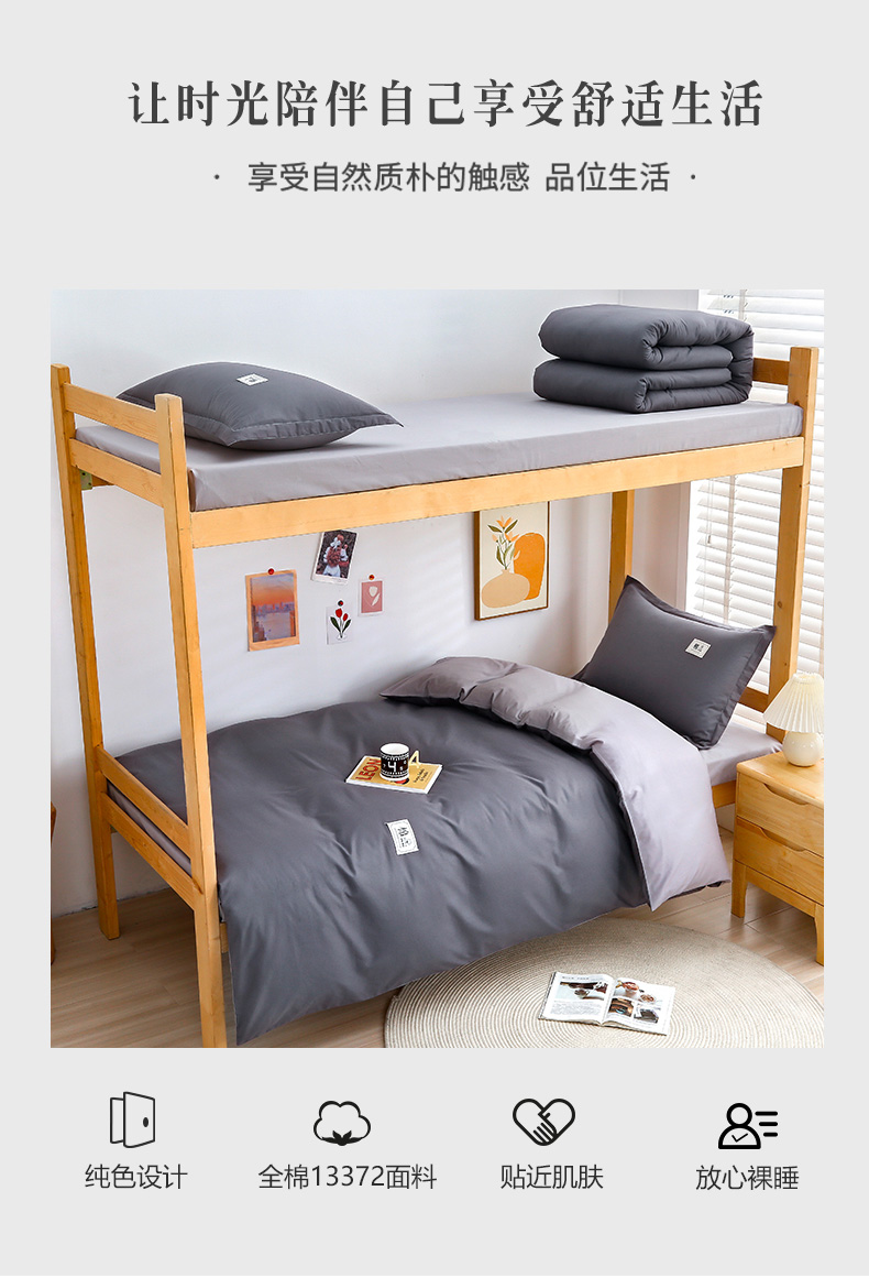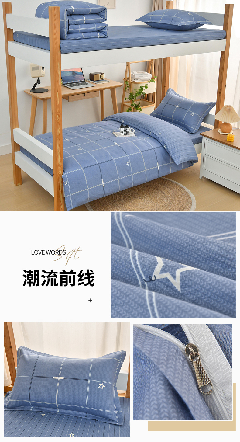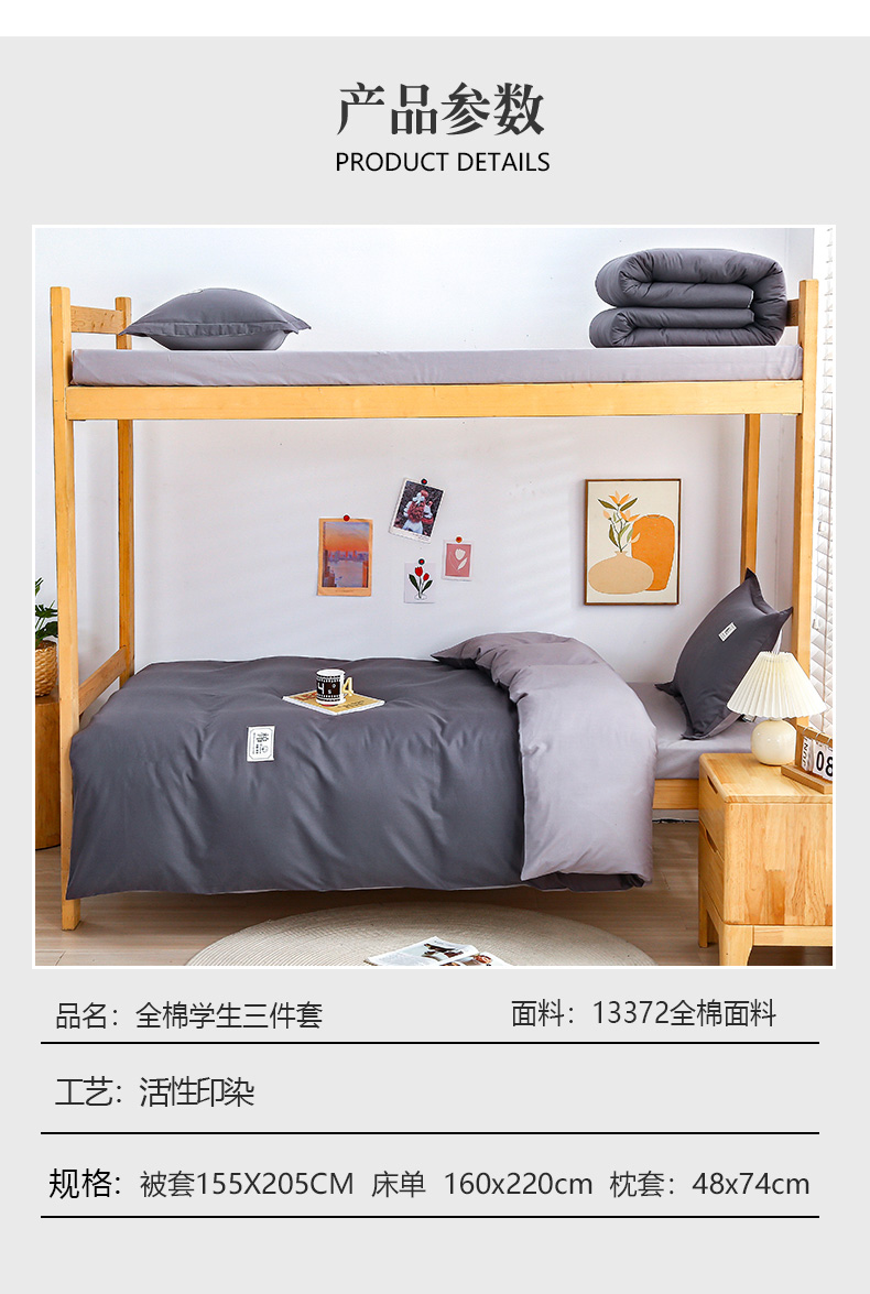 当前位置: 91家纺网 > 商品网购 > 床品套件 > 四件套 > 全棉普通四件套 > 乐旗家纺 2025新款全棉13372印花学生上下铺套件宿舍三件套 深灰+浅灰