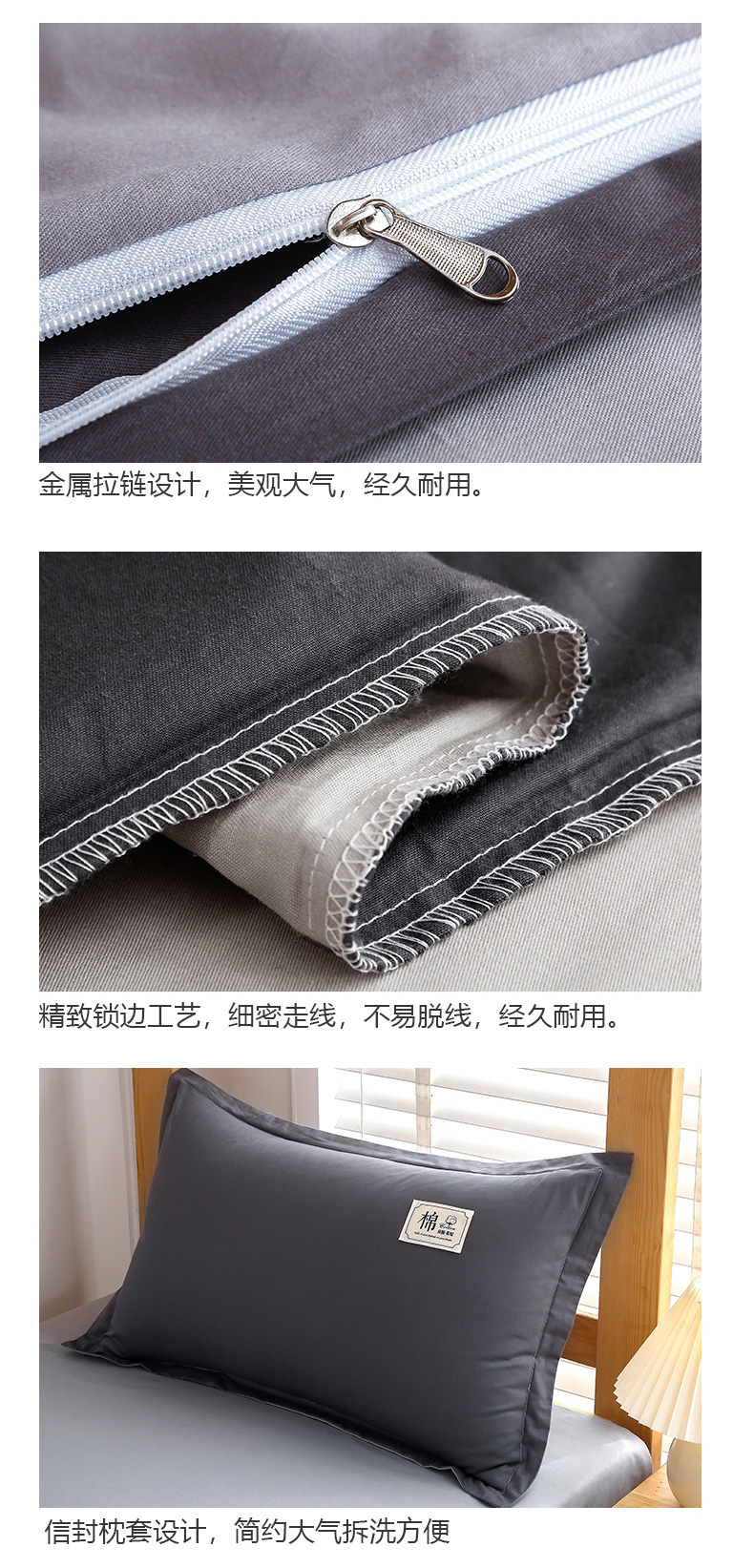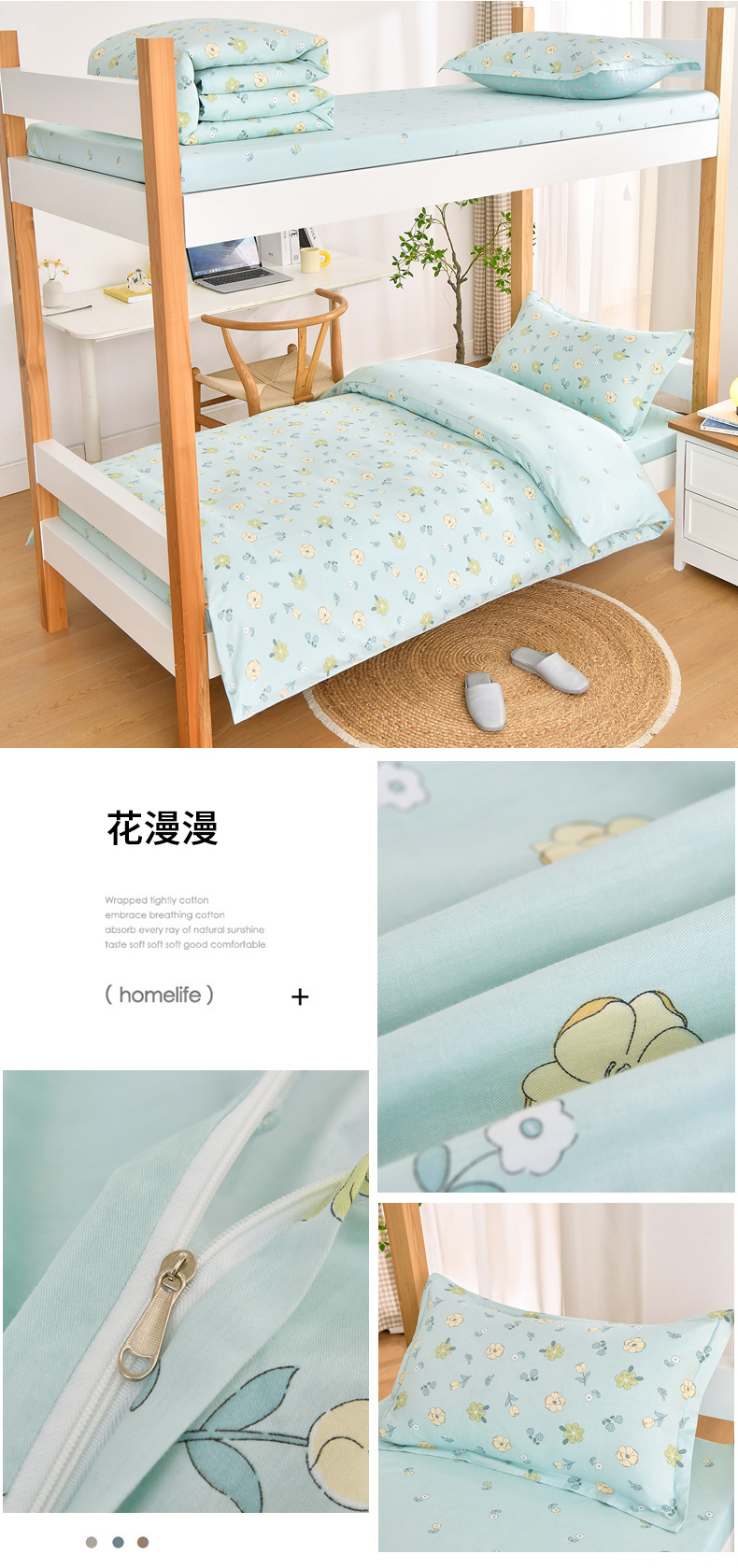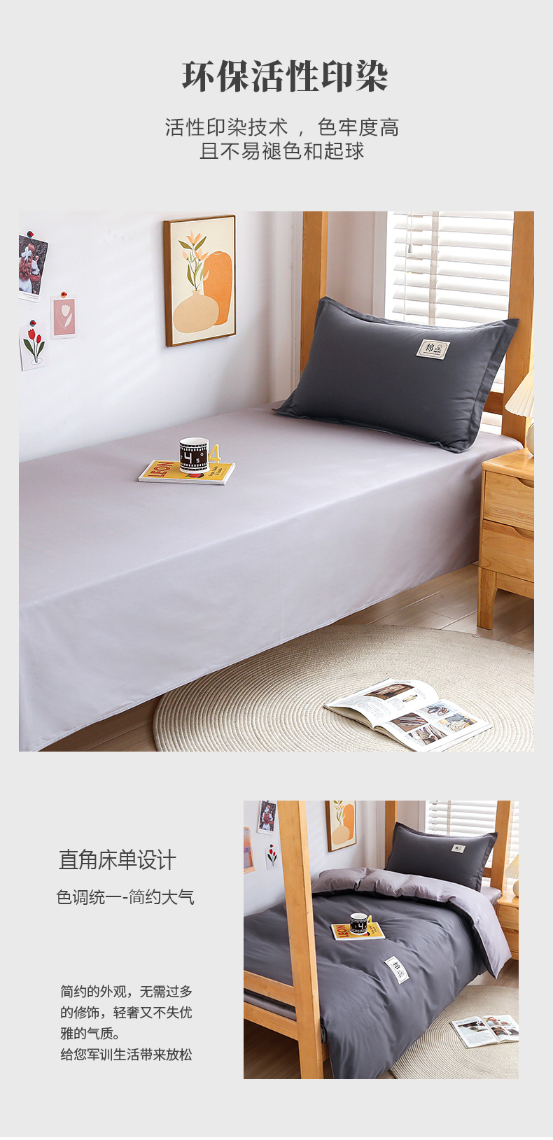 当前位置: 91家纺网 > 商品网购 > 床品套件 > 四件套 > 全棉普通四件套 > 乐旗家纺 2025新款全棉13372印花学生上下铺套件宿舍三件套 深灰+浅灰
