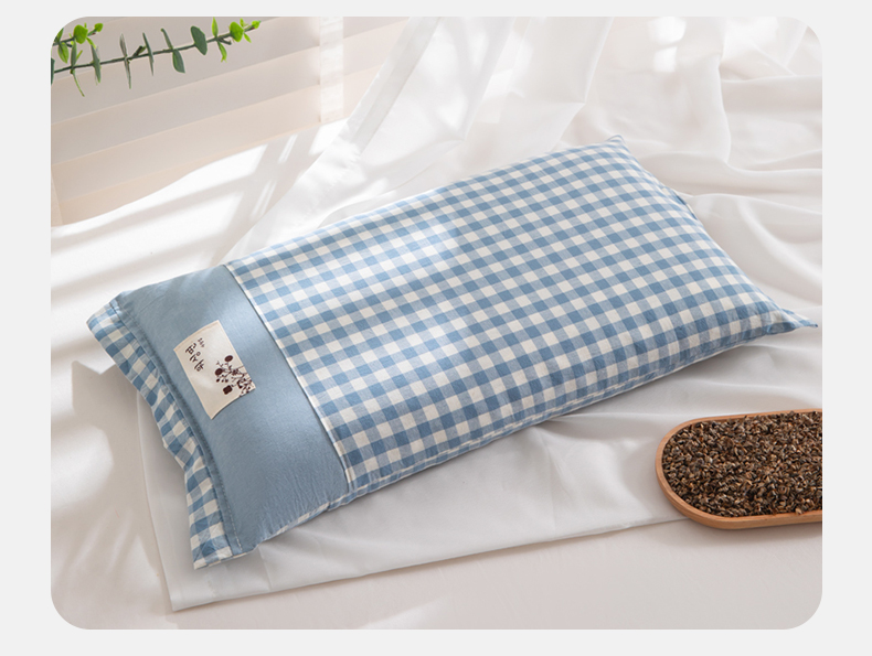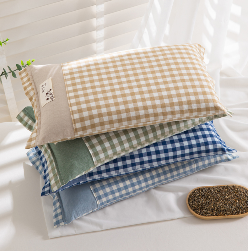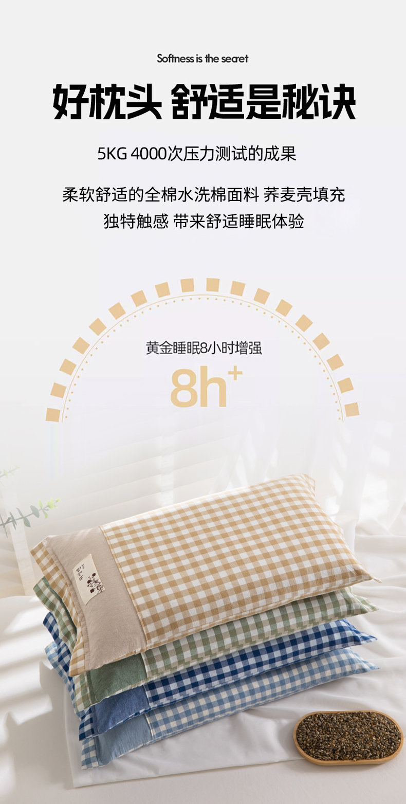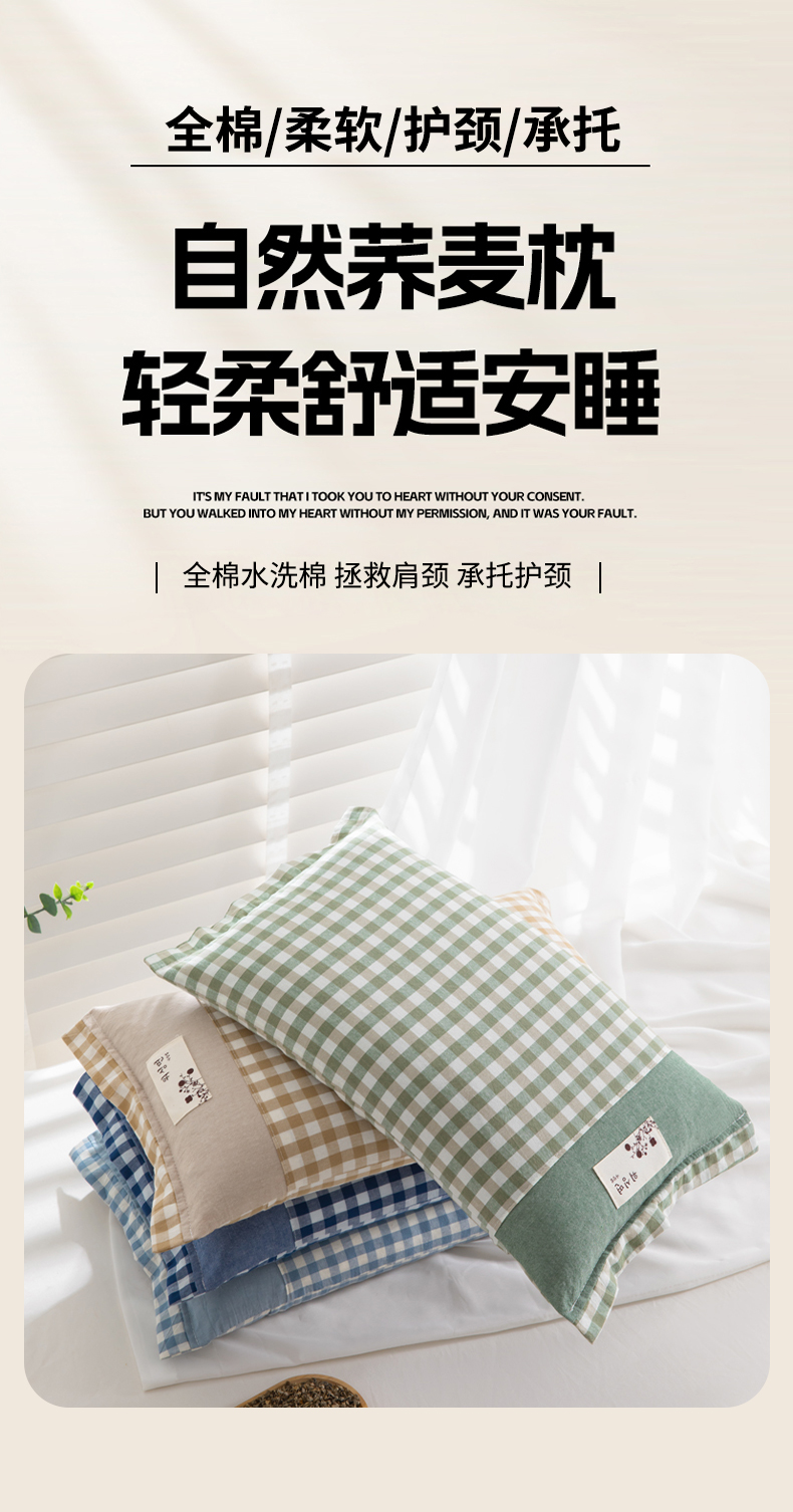 商品名称:佳合枕芯 2025新款新品全棉水洗棉拼色小方格荞麦枕头枕芯 拼色小方格荞麦枕-浅蓝色 30*50cm/只