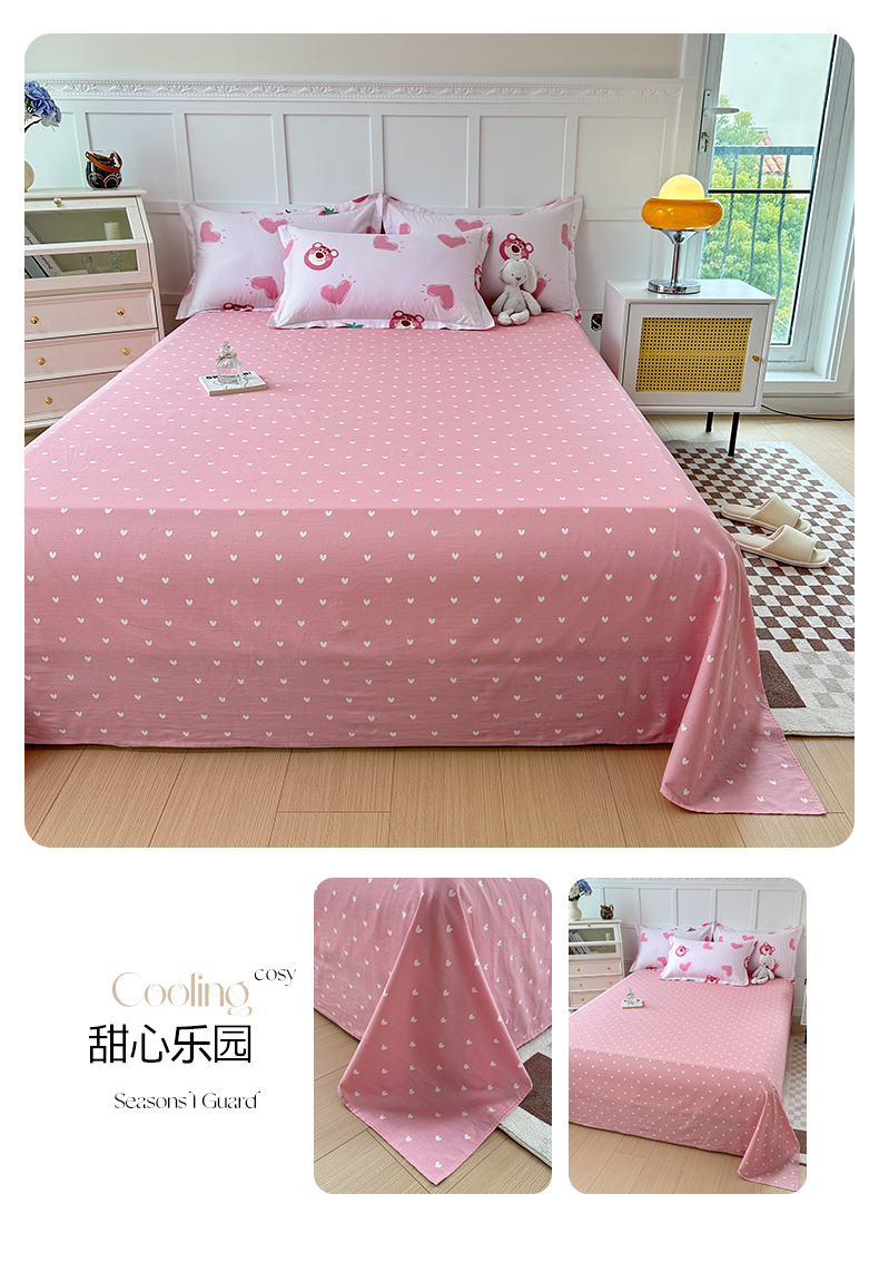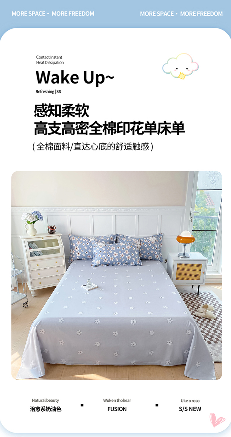 小叮当家纺仓储工厂店 (爆款花型 长期款 不断货)2025新款小清新印花条纹卡通花卉纯棉全棉单品系列--单床单 洛可可