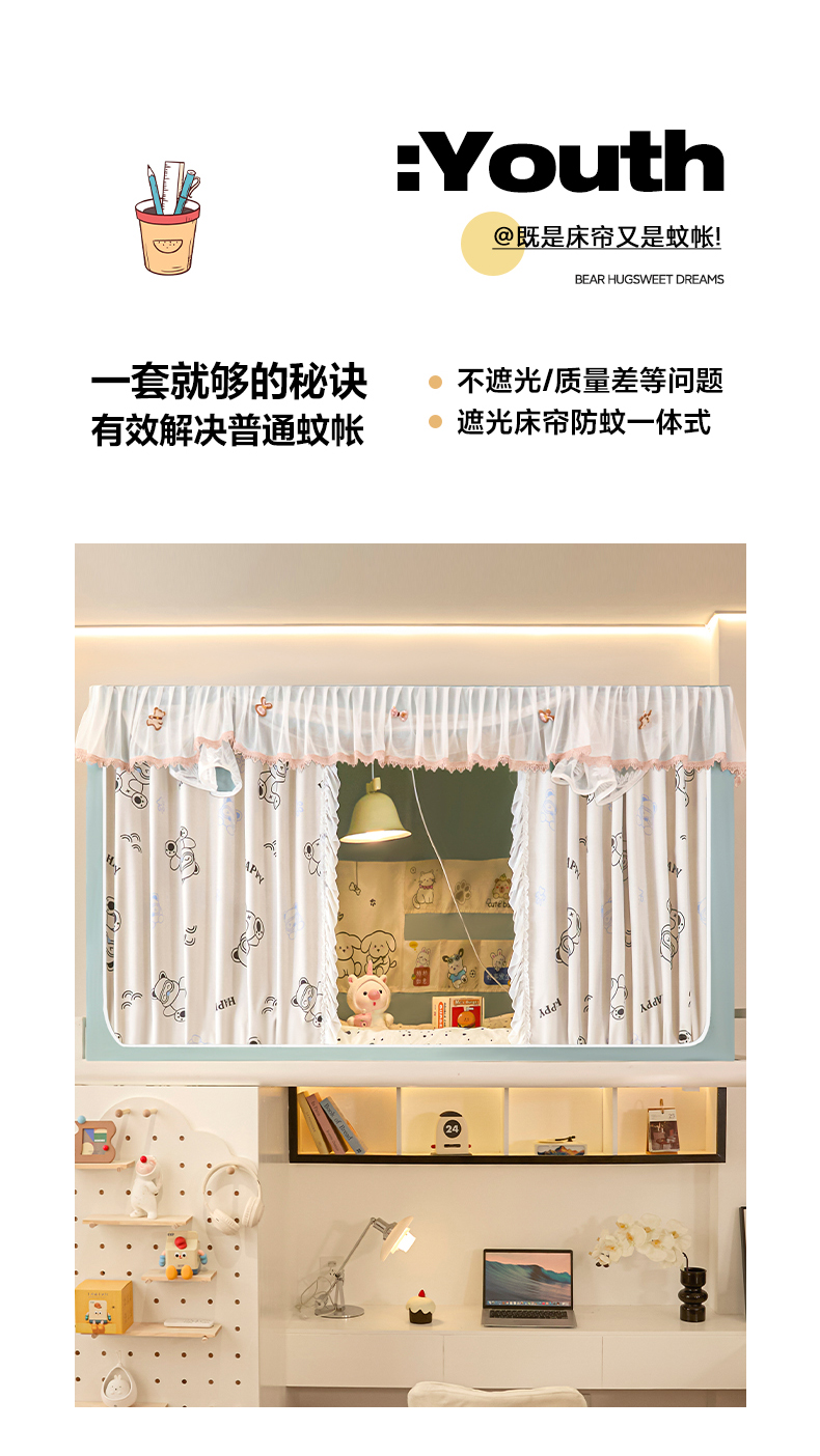 当前位置: 91家纺网 > 商品网购 > 床上用品 > 蚊帐 > 学生蚊帐 > 世婕 2025新款防蚊帐纱植绒遮光帘二合一双层学生蚊帐系列-提花款 提花款-眼睛熊