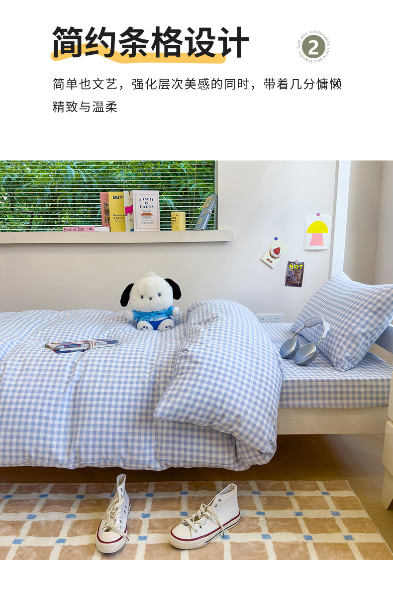 商品名称:蓝冰家纺 2025新款学生水洗棉宿舍上下铺三件套 灰白条纹