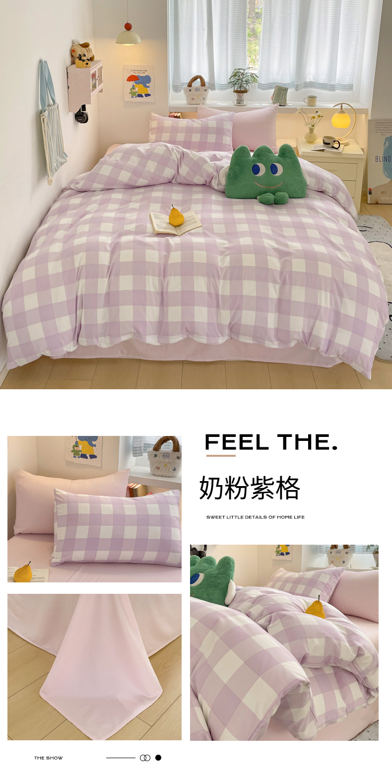 当前位置: 91家纺网 > 商品网购 > 床品套件 > 四件套 > 雨帆家纺 2025新款时尚印花水洗棉混搭四件套 奶粉紫格