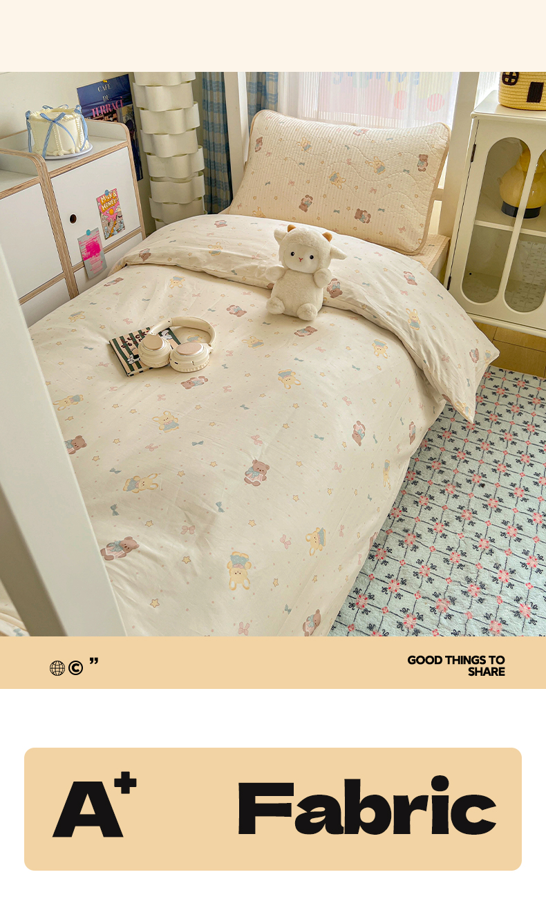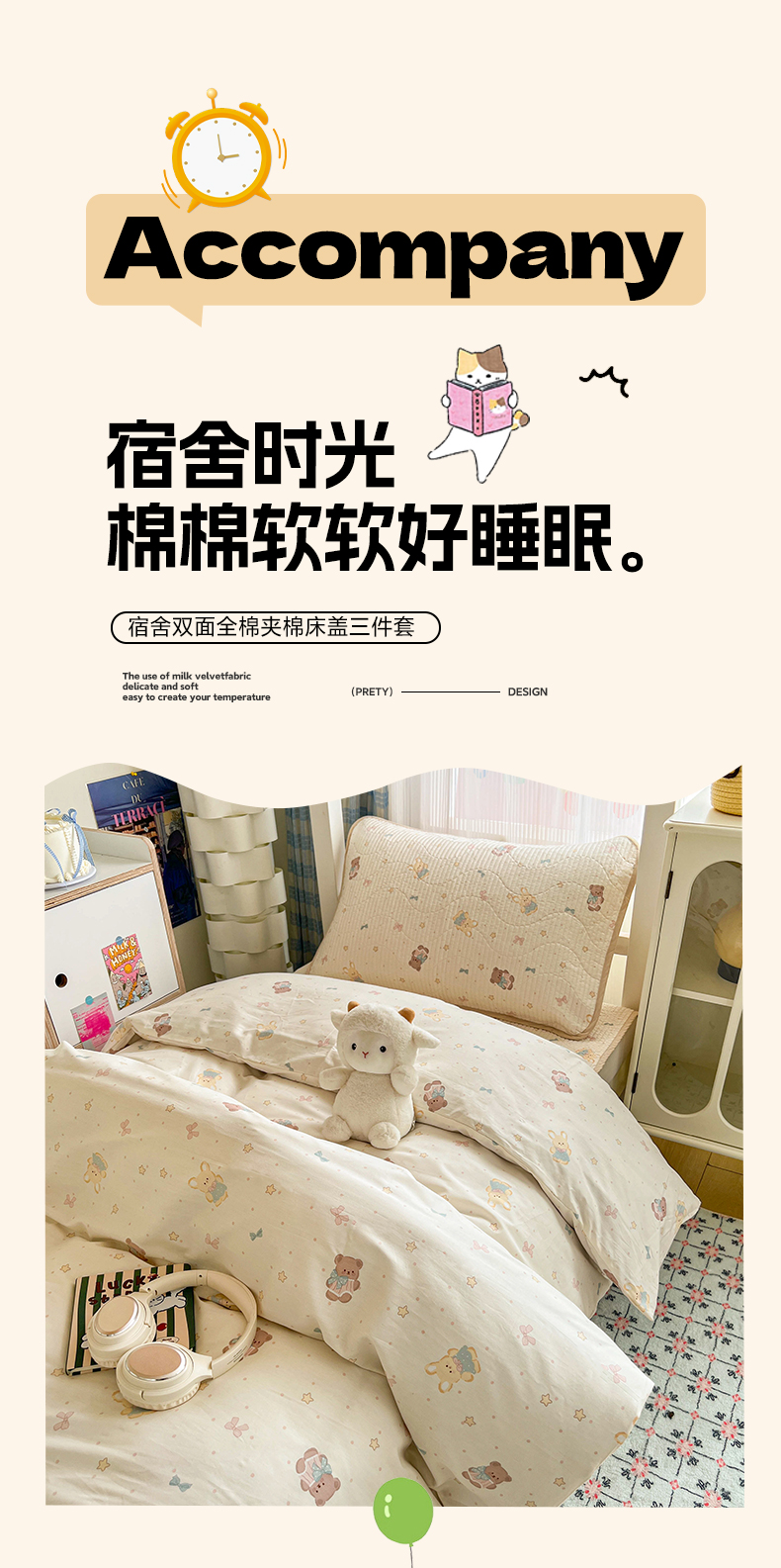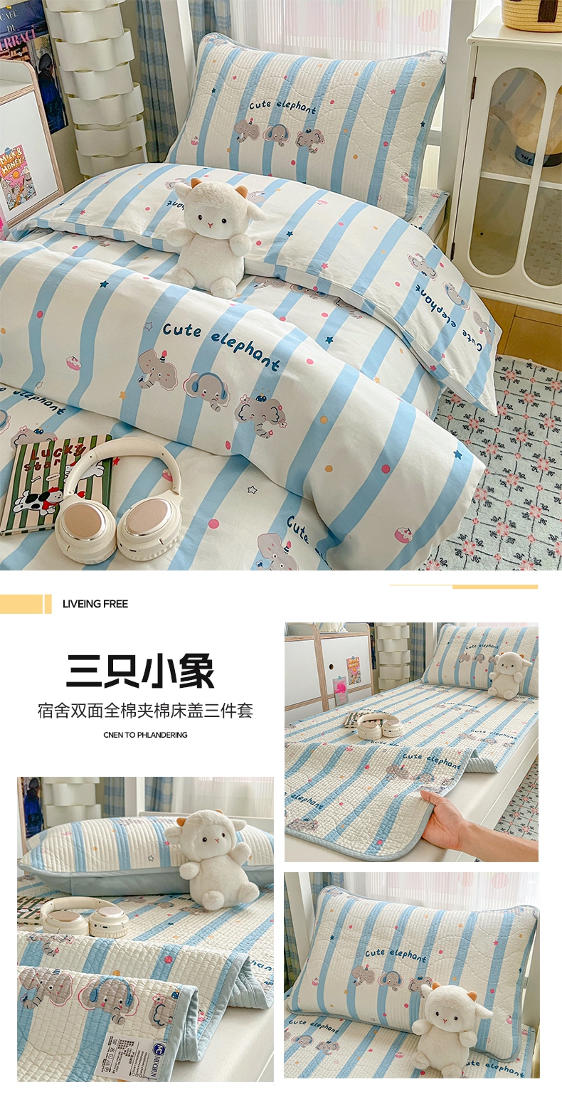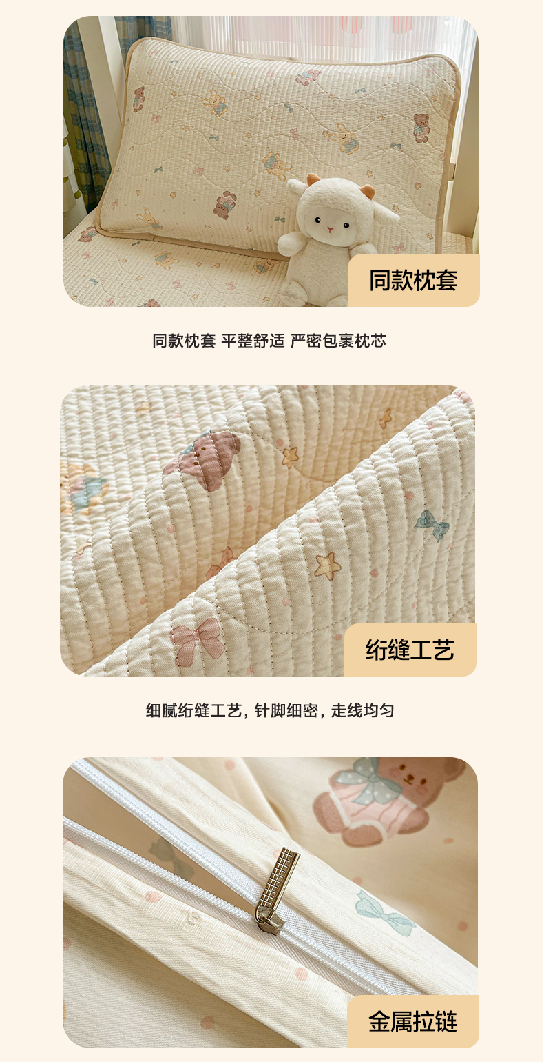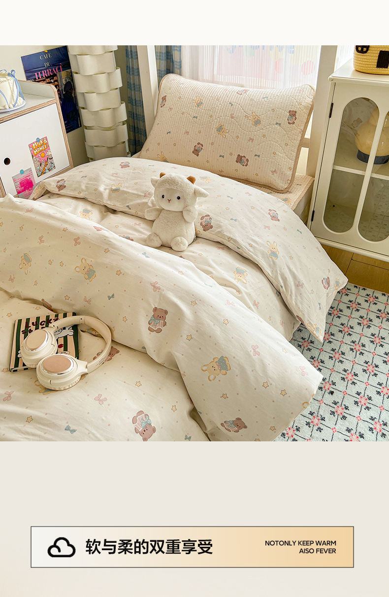 商品名称:沐纯家居 2025新款学生款双面纯棉棉花床盖三件套 爱星熊