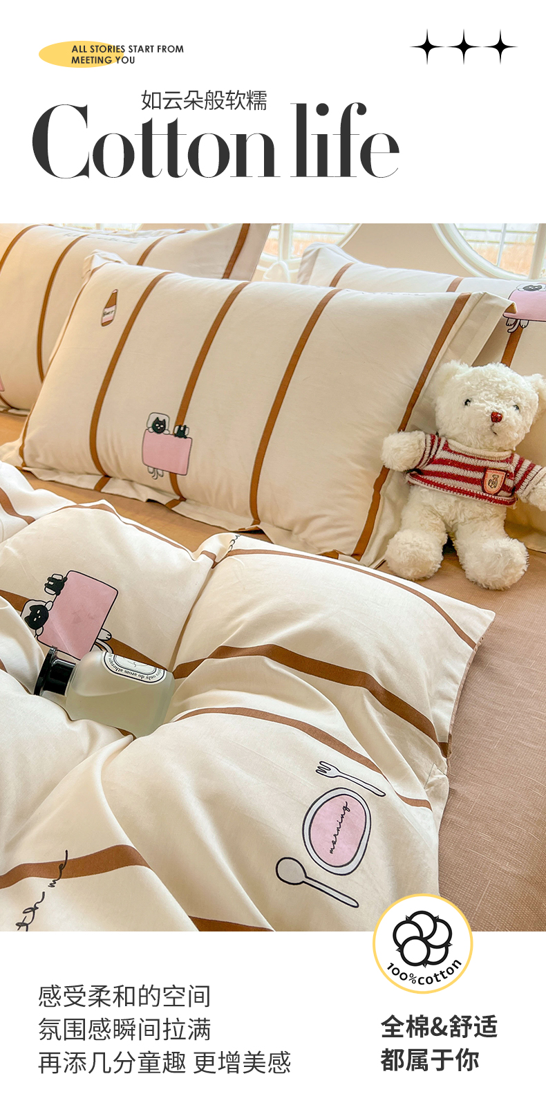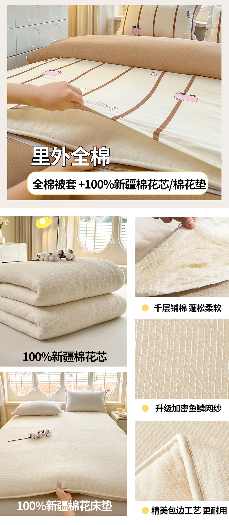 商品名称:西域种棉人·千百笠 2025新款全棉纯棉大学生宿舍100%新疆棉花被子被褥一整套枕头床垫三件套六件套 猫咪晚餐
