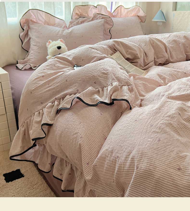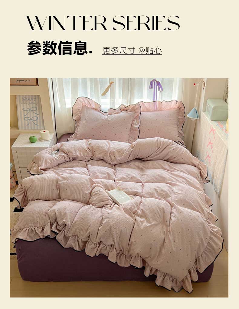 当前位置: 91家纺网 > 商品网购 > 床品套件 > 四件套 > 其它四件套 > 繁花家居 2025新款学生季韩式云感针织棉大花边木耳边四件套 一见倾心