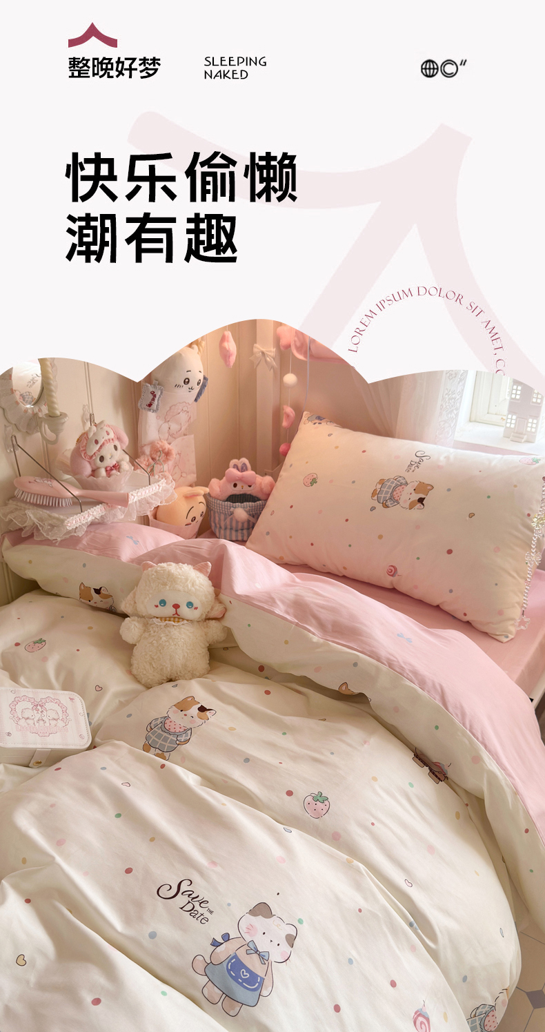 Sweet dreams甜梦 2025新款学生床全棉纯棉三套件学生三件套宿舍三件套上下铺三件套 元气猫猫