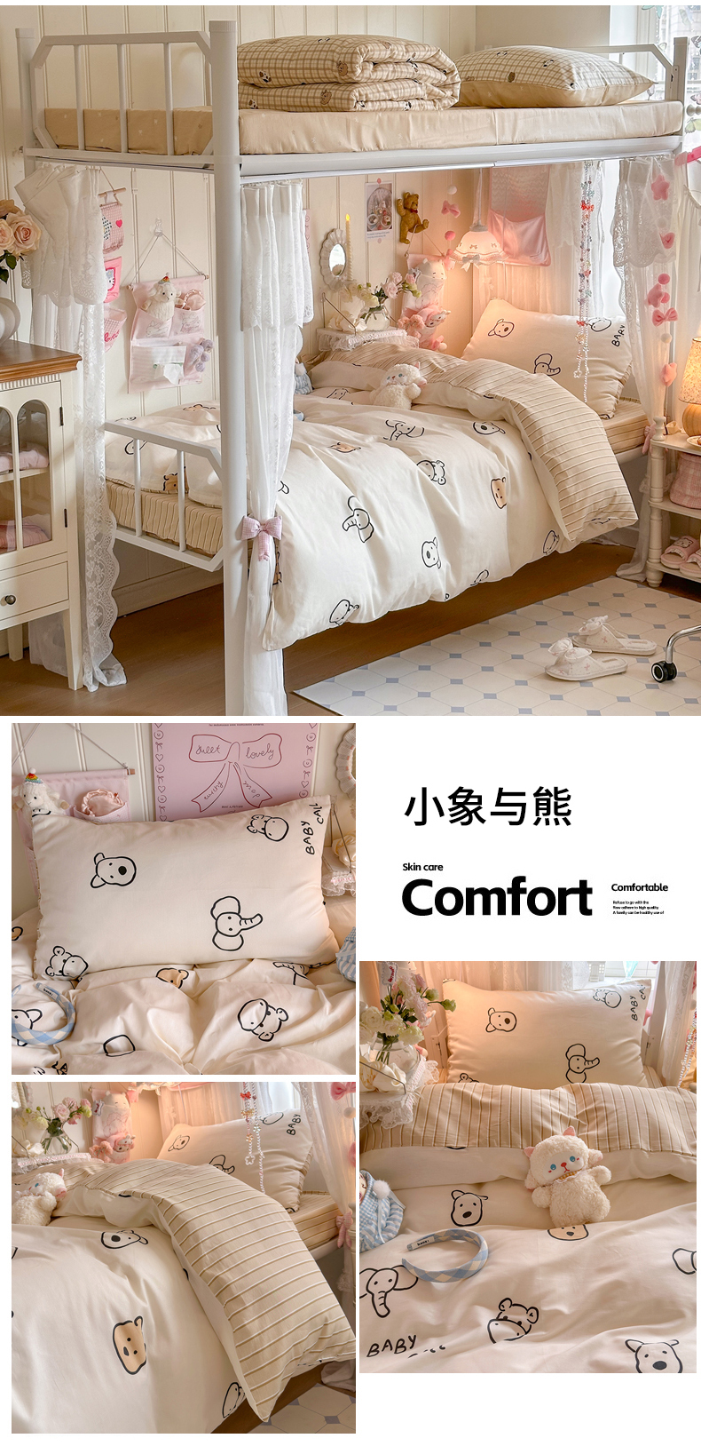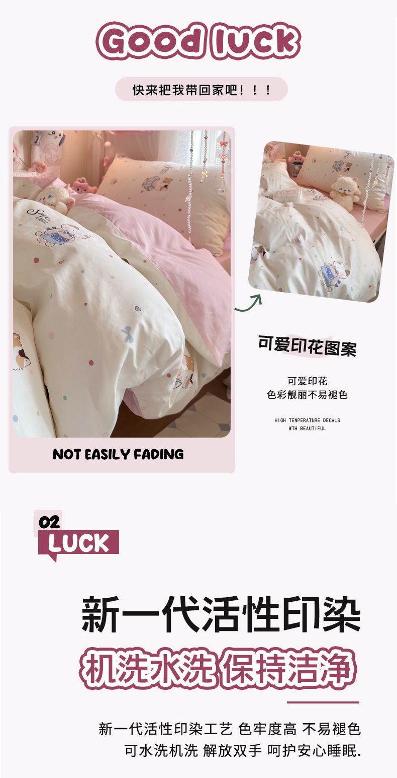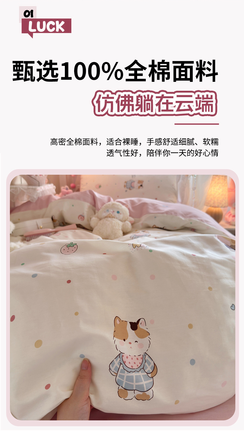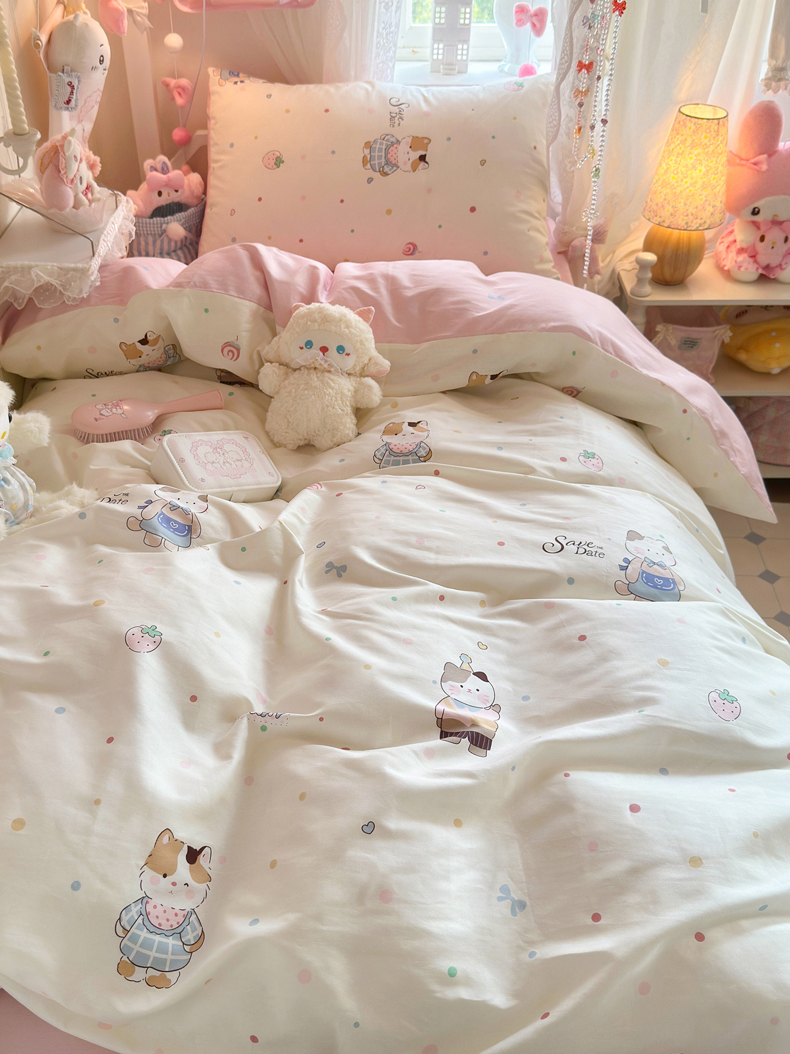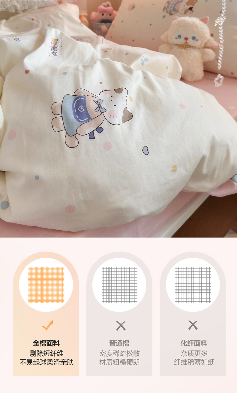 商品名称:Sweet dreams甜梦 2025新款学生床全棉纯棉三套件学生三件套宿舍三件套上下铺三件套 元气猫猫