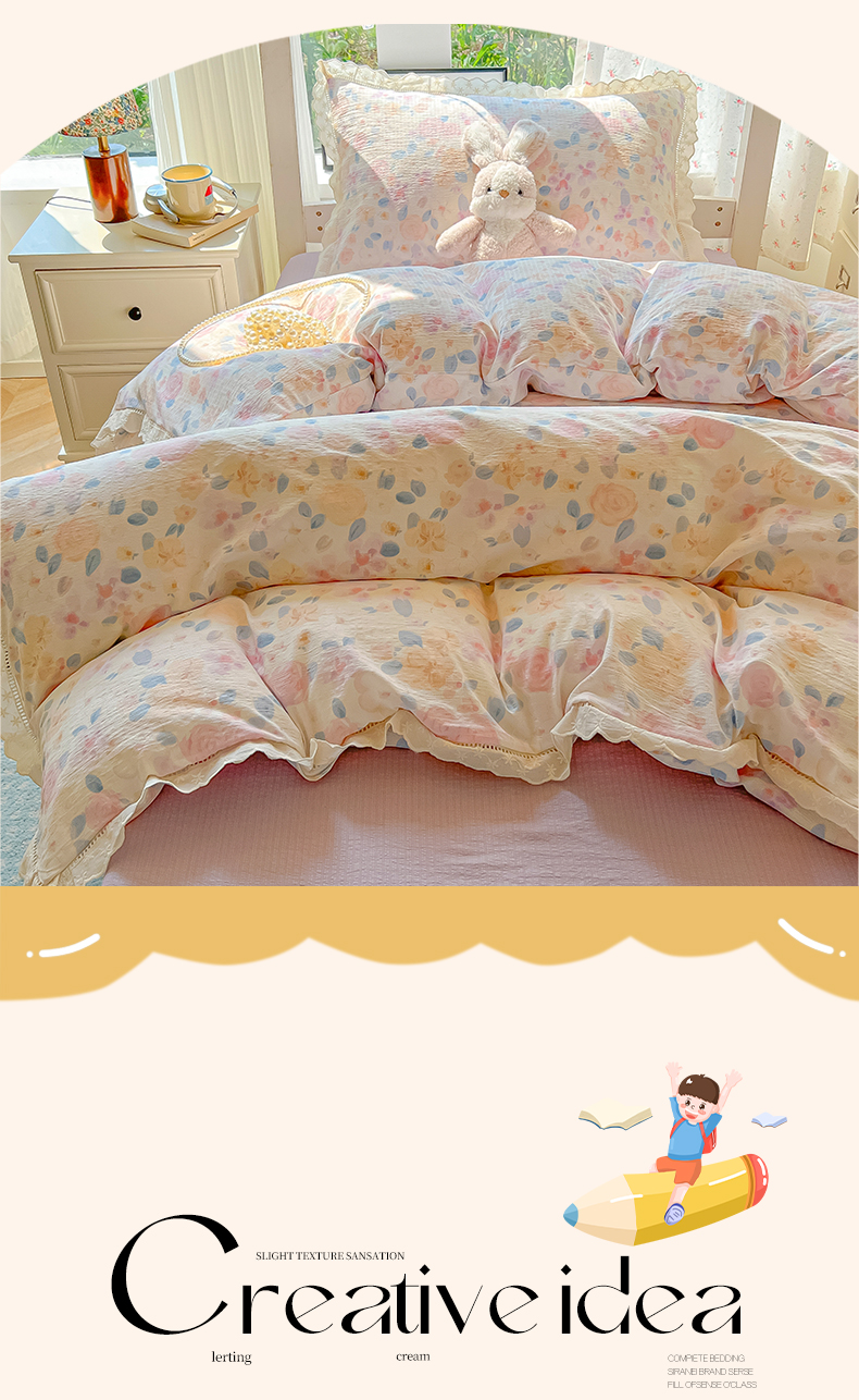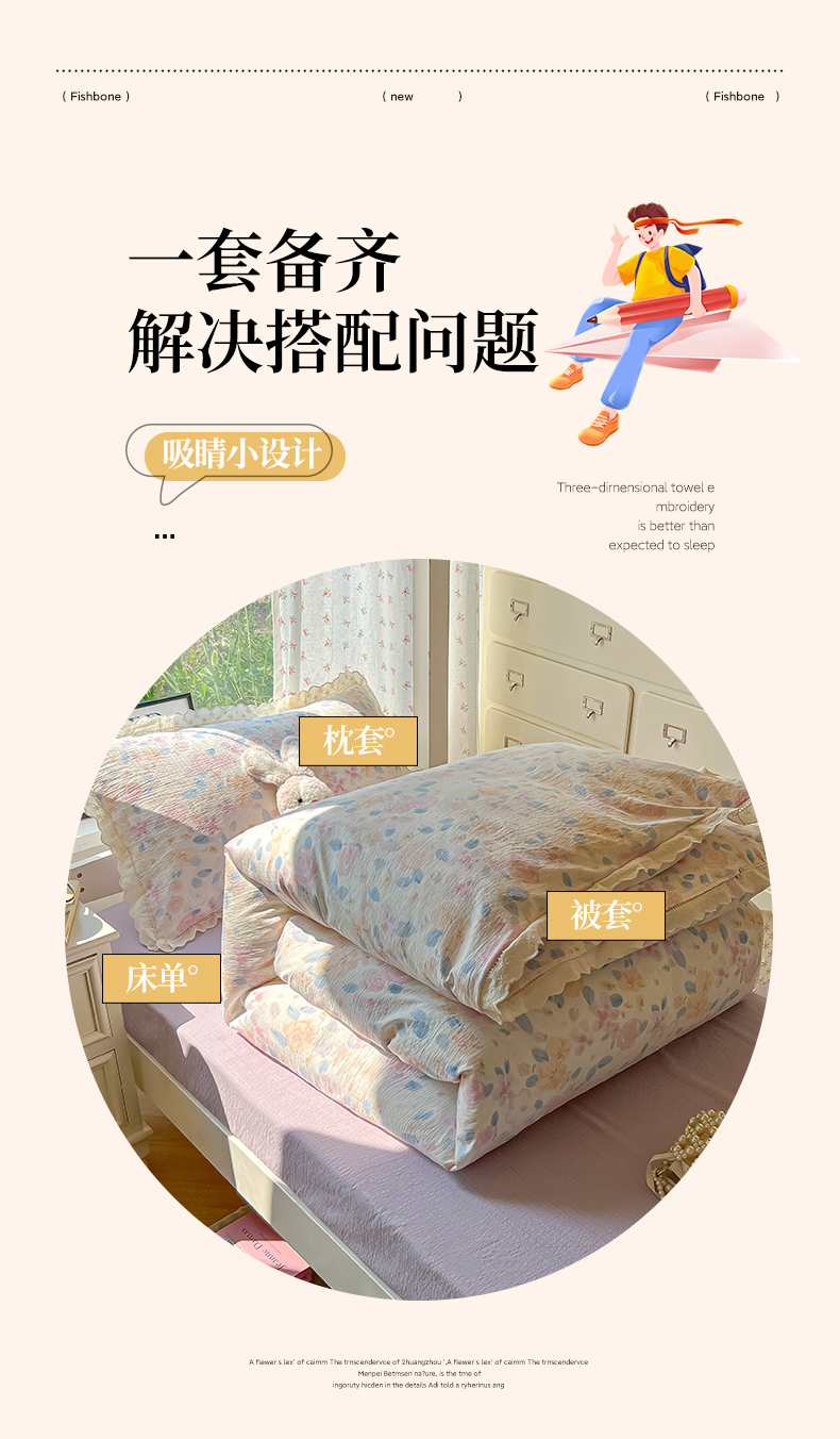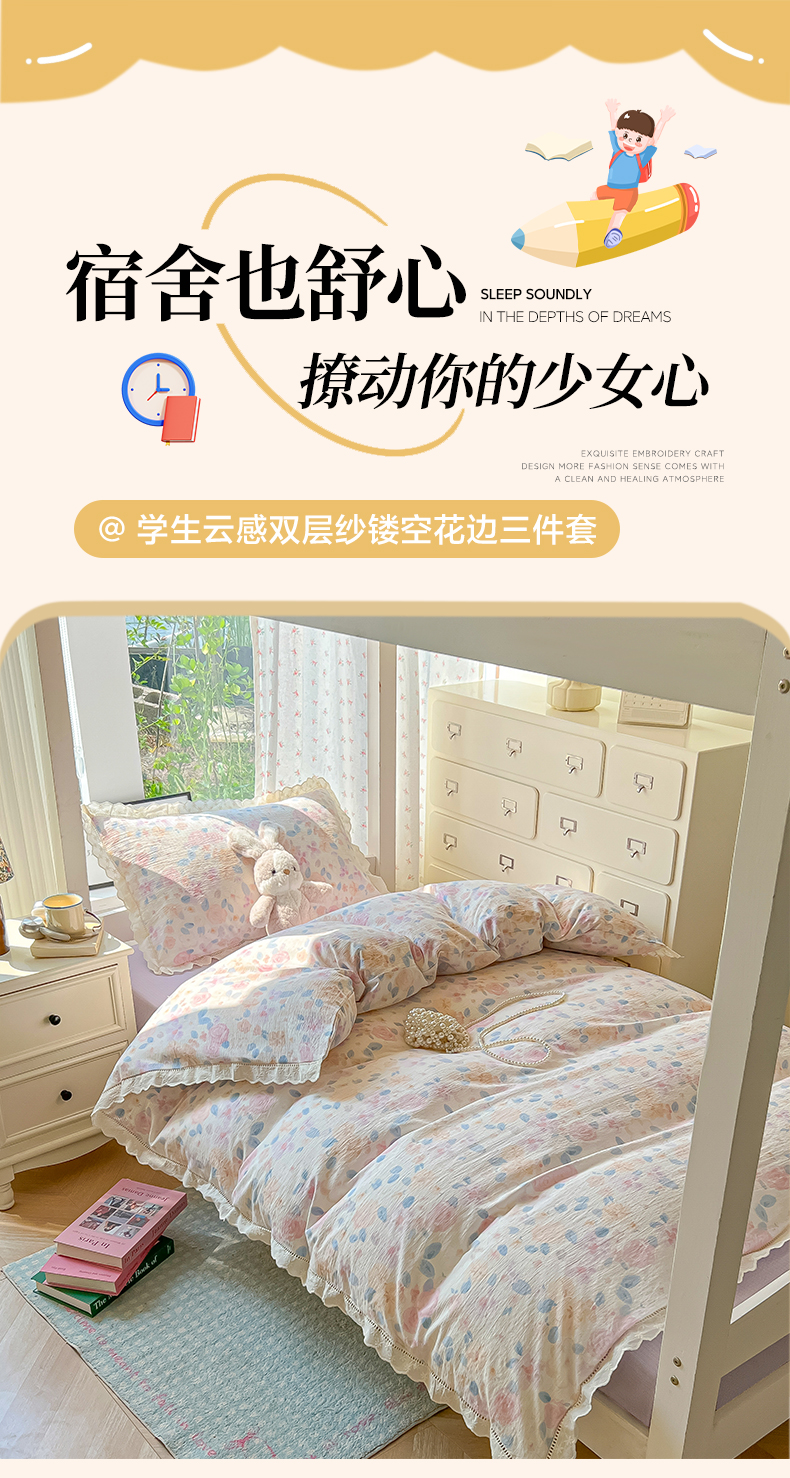 当前位置: 91家纺网 > 商品网购 > 床品套件 > 三件套 > 韩巢家纺 2025新款学生宿舍三件套上下铺学生季开学季床品 镂空花边款-时间画报-米