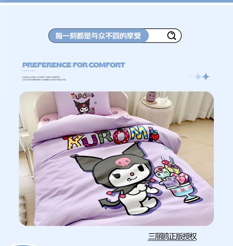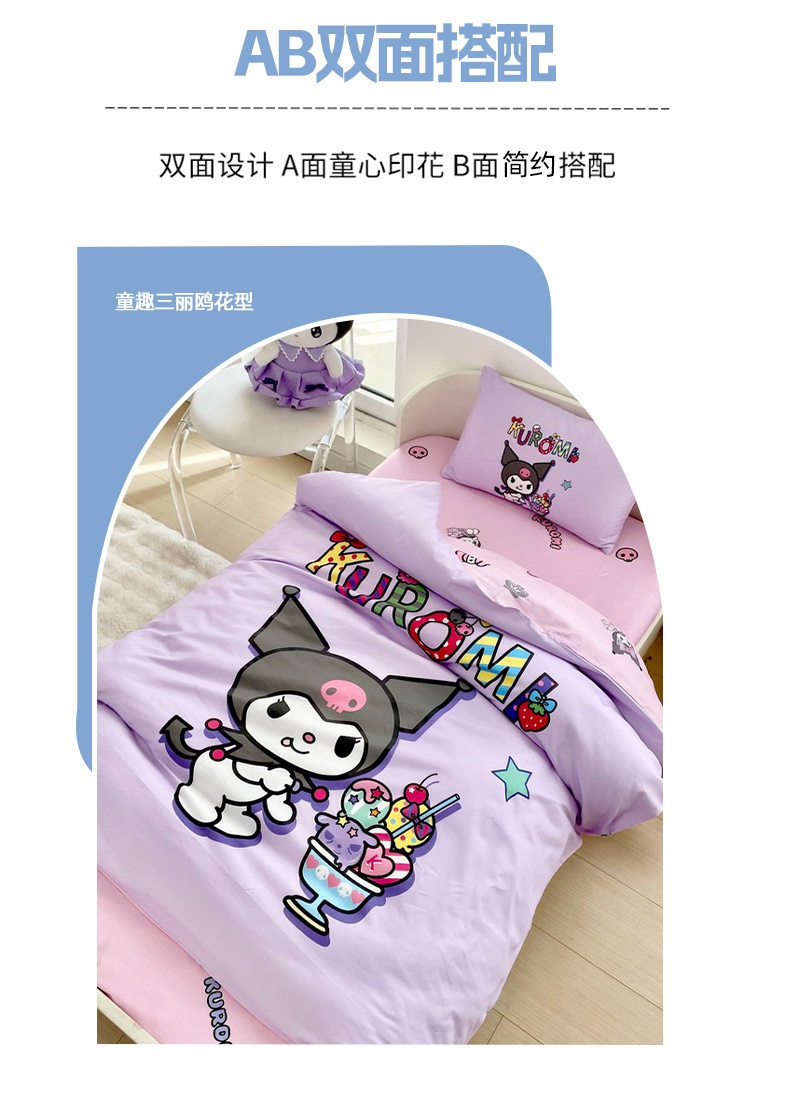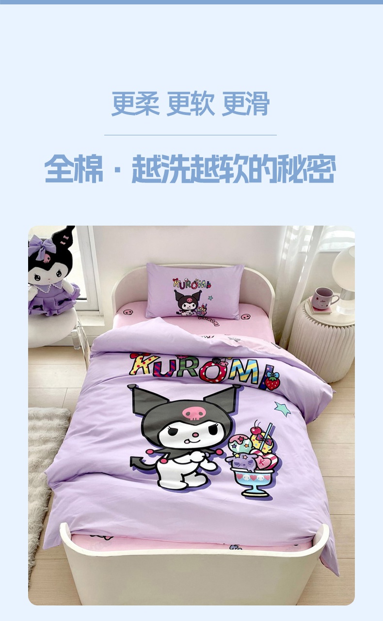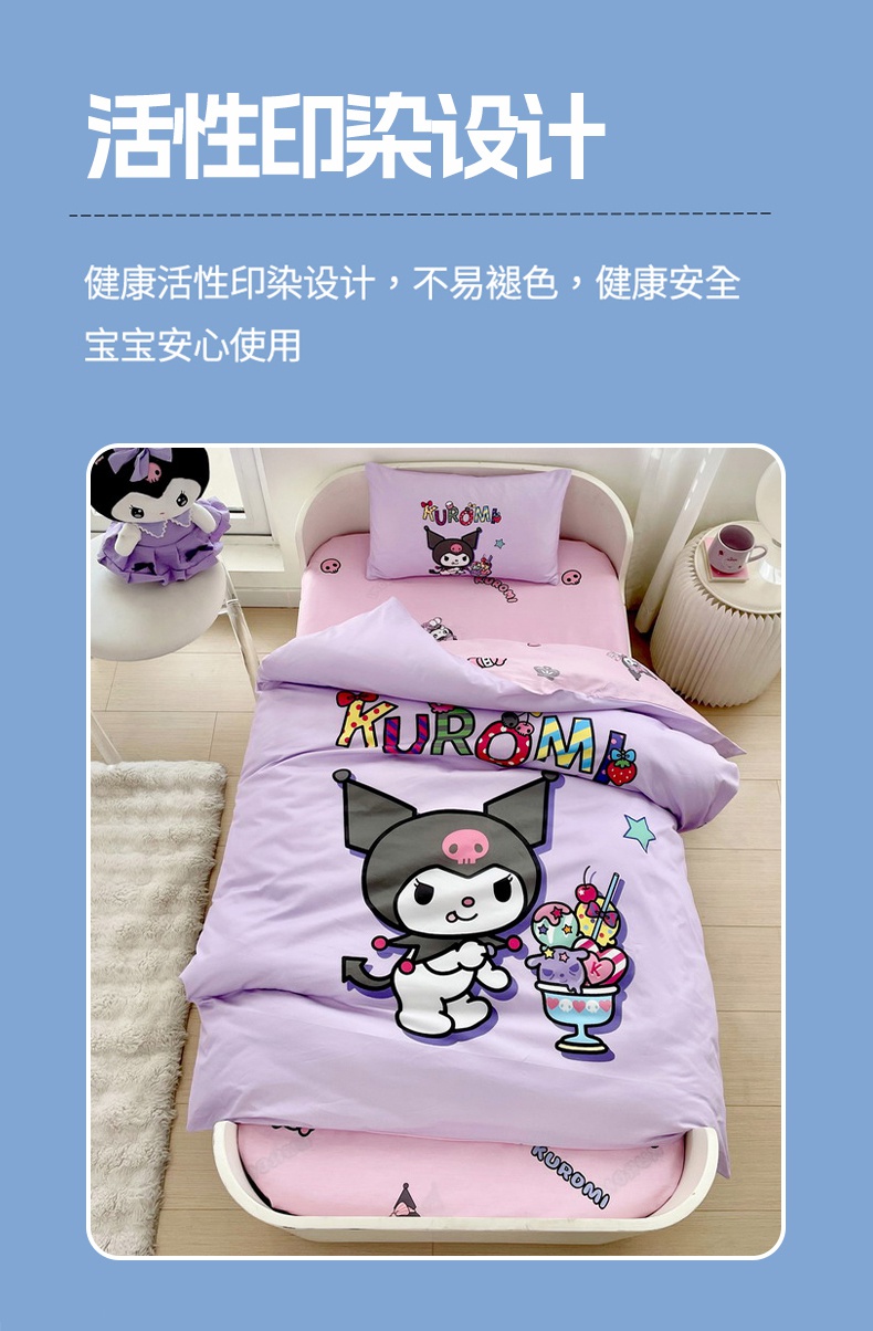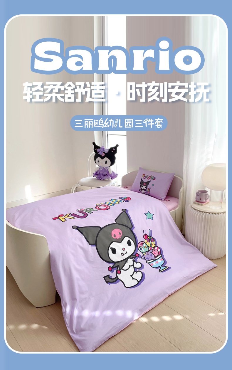 蘭菲家纺 2025新款学生季全棉幼儿园三丽鸥三件套大版系列 果茶