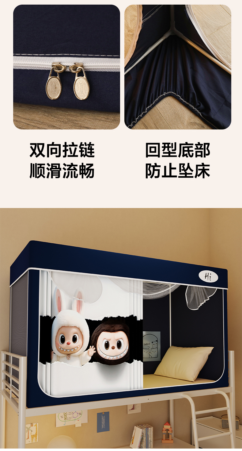 当前位置: 91家纺网 > 商品网购 > 床上用品 > 蚊帐 > 学生蚊帐 > 安金蚊帐2025新款防蚊遮光一体99%强遮光学生宿舍上下铺遮光学生蚊帐-藏蓝系列 黑白布布