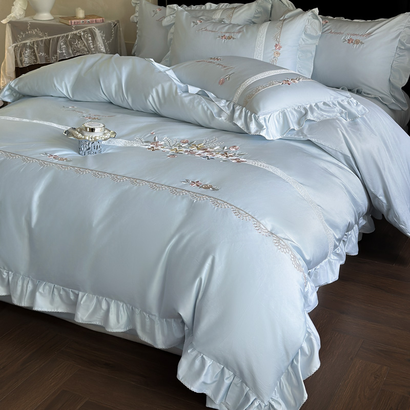 (总)紫桐 Lila lndus 2025新款50支双股长绒棉纯棉四件套,迷迭花园 迷雾蓝,迷迭花园 奶昔白