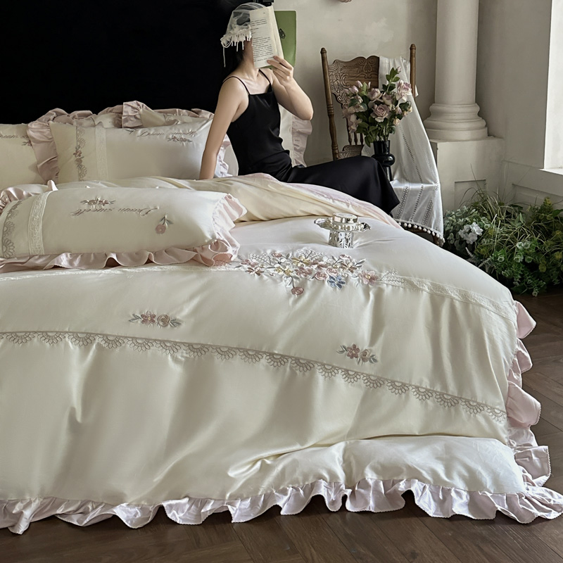 紫桐 Lila lndus 2025新款50支双股长绒棉纯棉四件套 迷迭花园 奶昔白