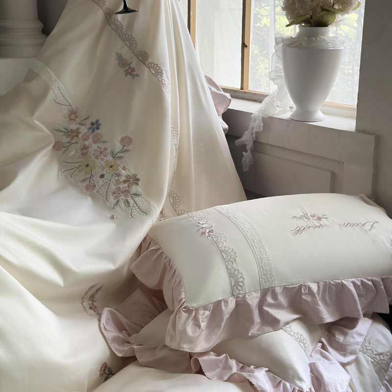 (总)紫桐 Lila lndus 2025新款50s双股长绒棉居家系列四件套-花间溢彩,花间溢彩-纯净白,花间溢彩-宁静蓝,花间溢彩-清新绿,花间溢彩-优雅粉