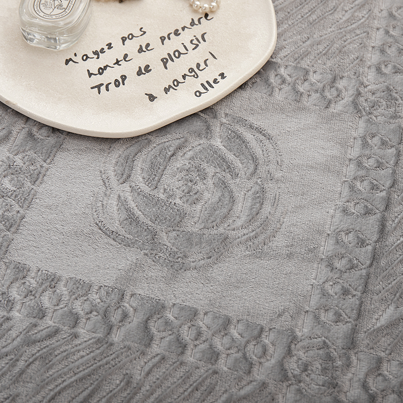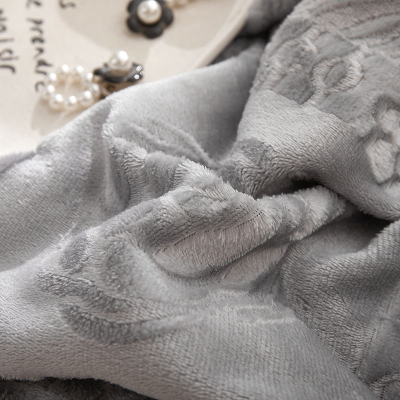 楼兰公主2025新款雪兔绒小香风提花雕花毯 山茶花奶白拼浅灰