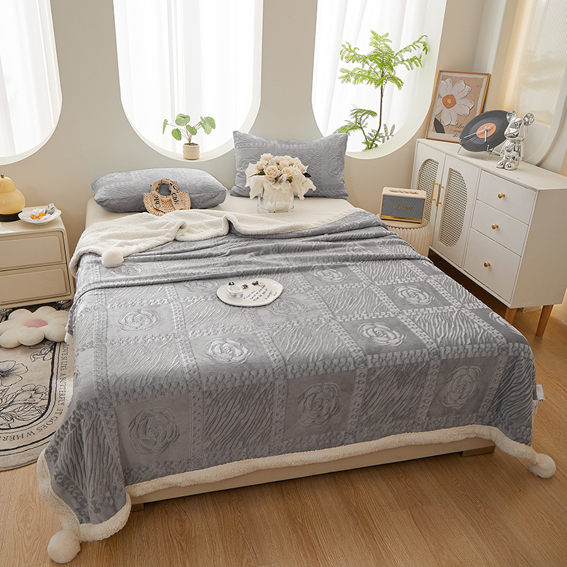 (总)楼兰公主 2025新款阳离子羊羔绒菱格毯毛毯毯子-麦格系列,菱格-粉,菱格-灰,菱格-咖,菱格-绿,菱格-白