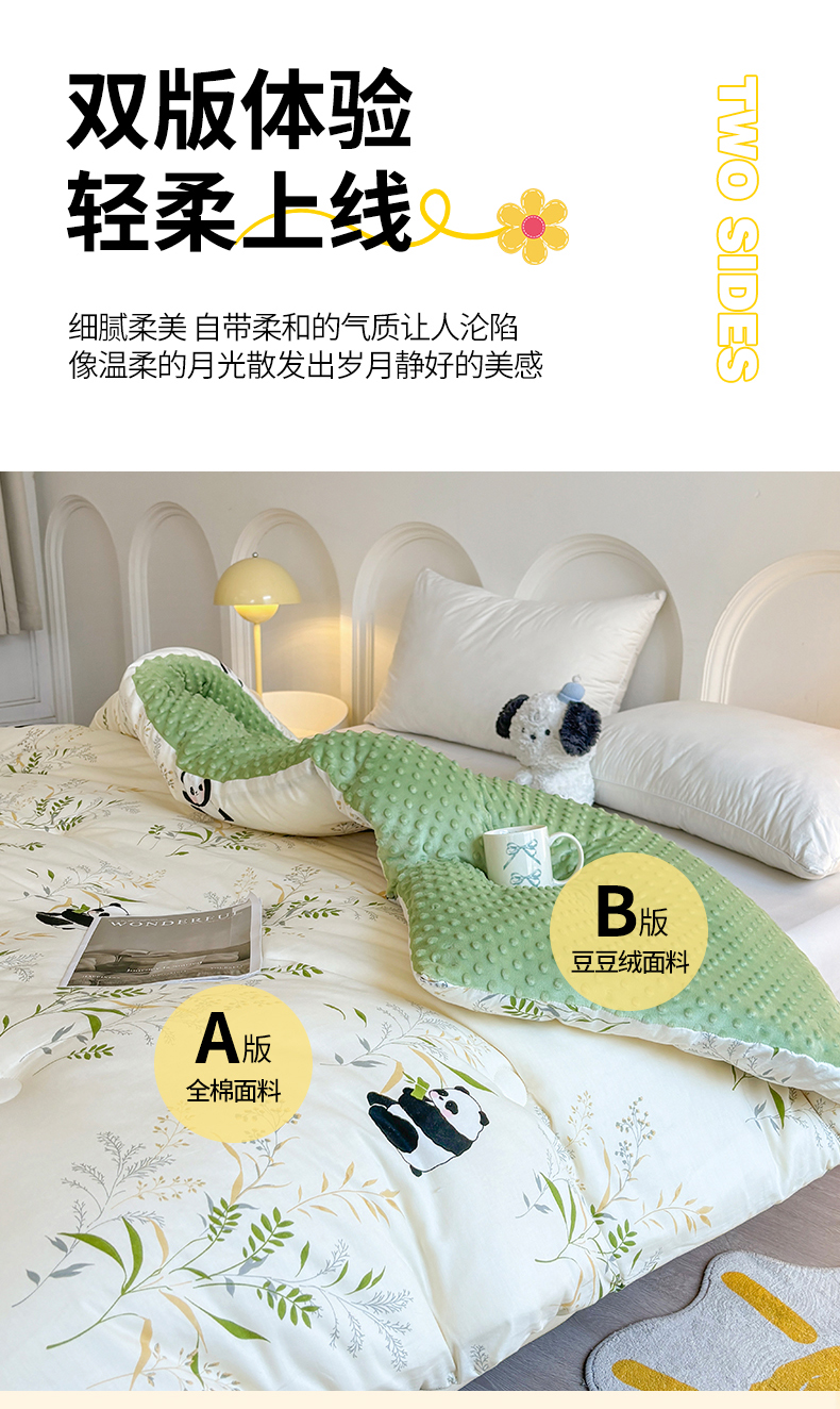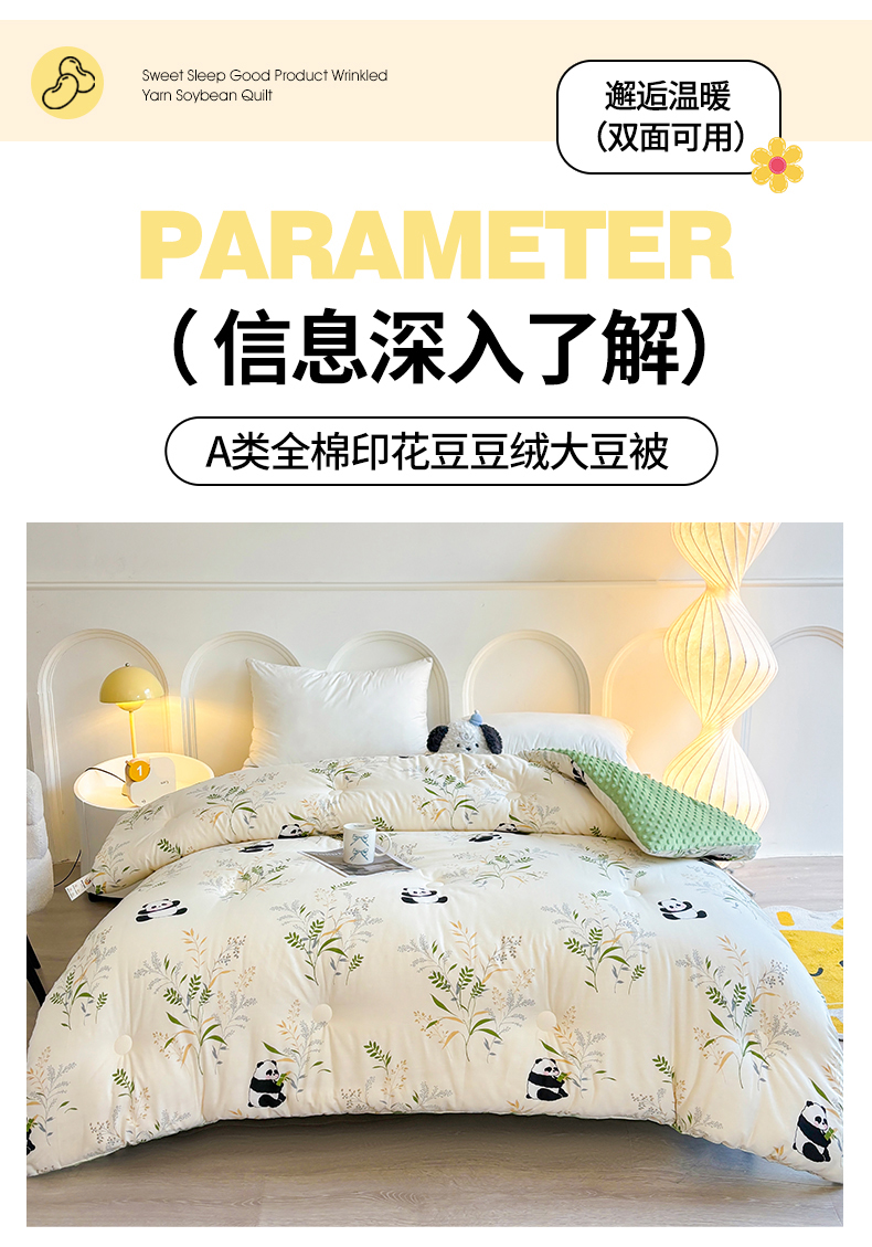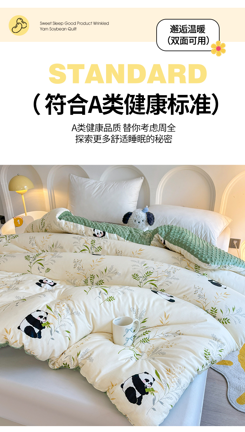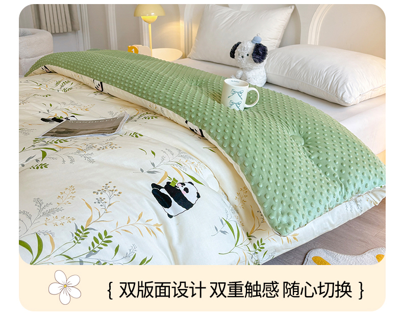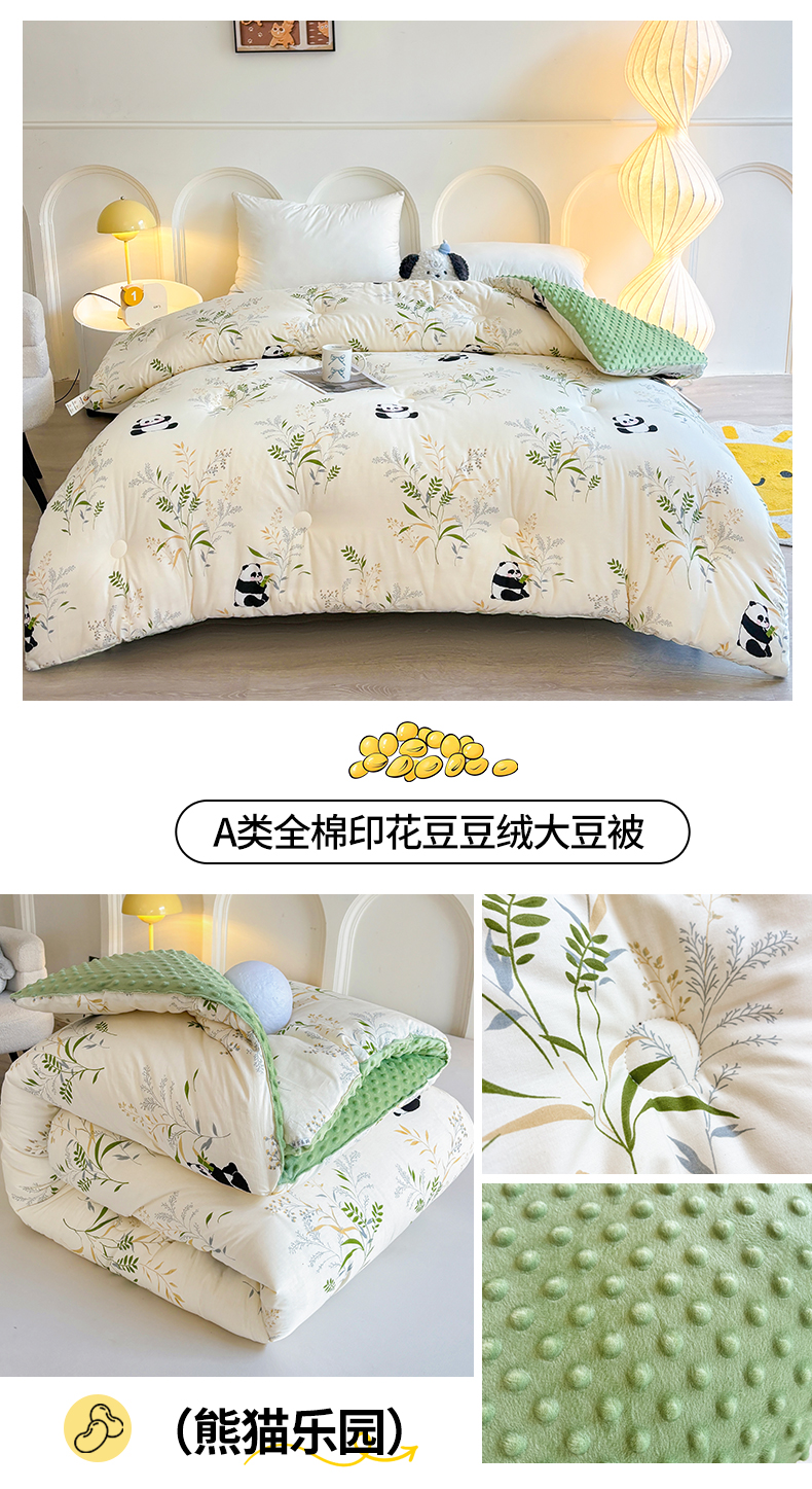 • 91家纺网 家纺一手货源 找家纺 小石头家纺 2025新款A类全棉纯棉印花豆豆绒大豆被冬被春秋被被子被芯 熊猫乐园