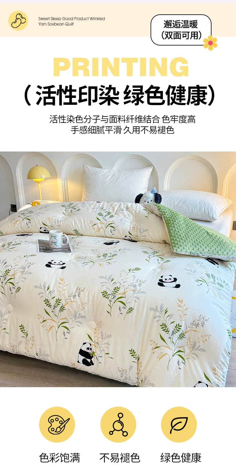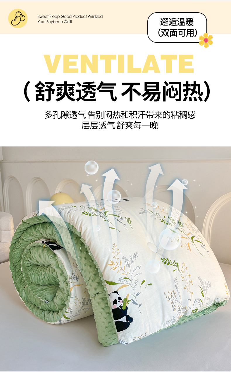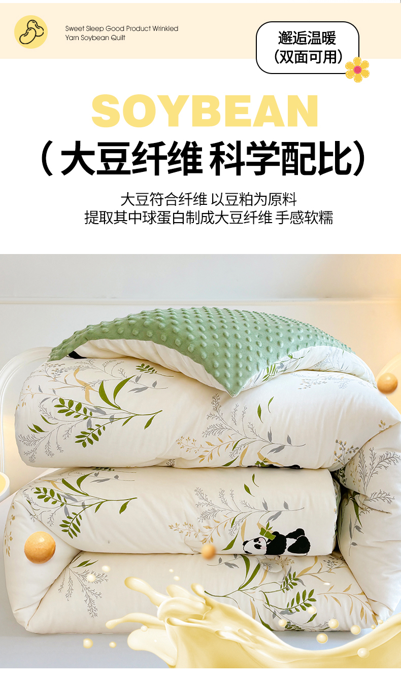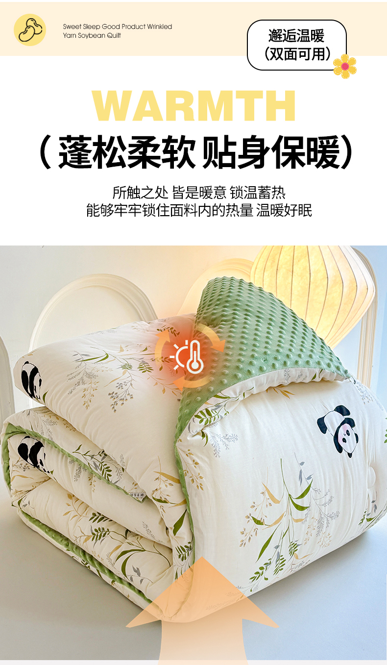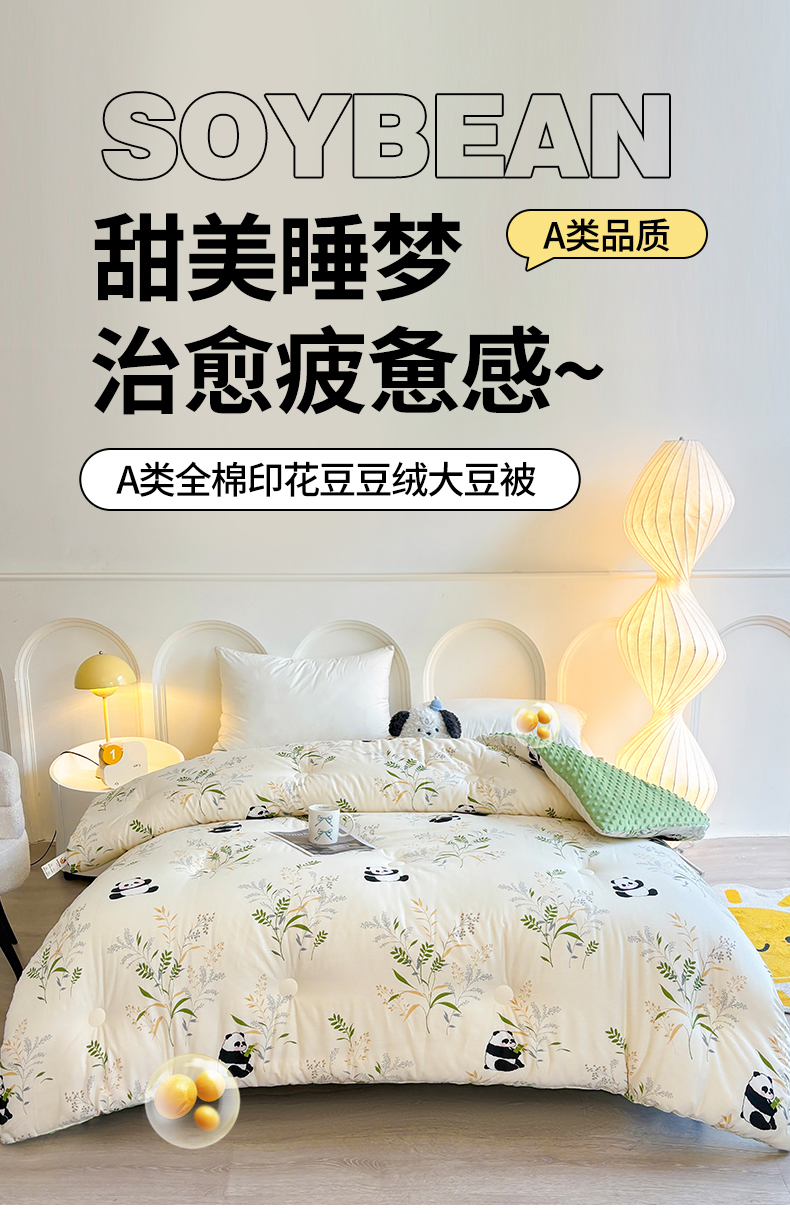 • 91家纺网 家纺一手货源 找家纺 小石头家纺 2025新款A类全棉纯棉印花豆豆绒大豆被冬被春秋被被子被芯 熊猫乐园