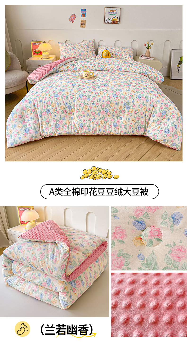 (总)小石头家纺 2025新款A类全棉纯棉印花豆豆绒大豆被冬被春秋被被子被芯,芳华风情,格子樱桃,花颜悦色,花园小熊,腊肠狗,兰若幽香,蓝色花海,梦溪小花,俏皮布布,群芳争艳,熊猫乐园,雅柔枝韵